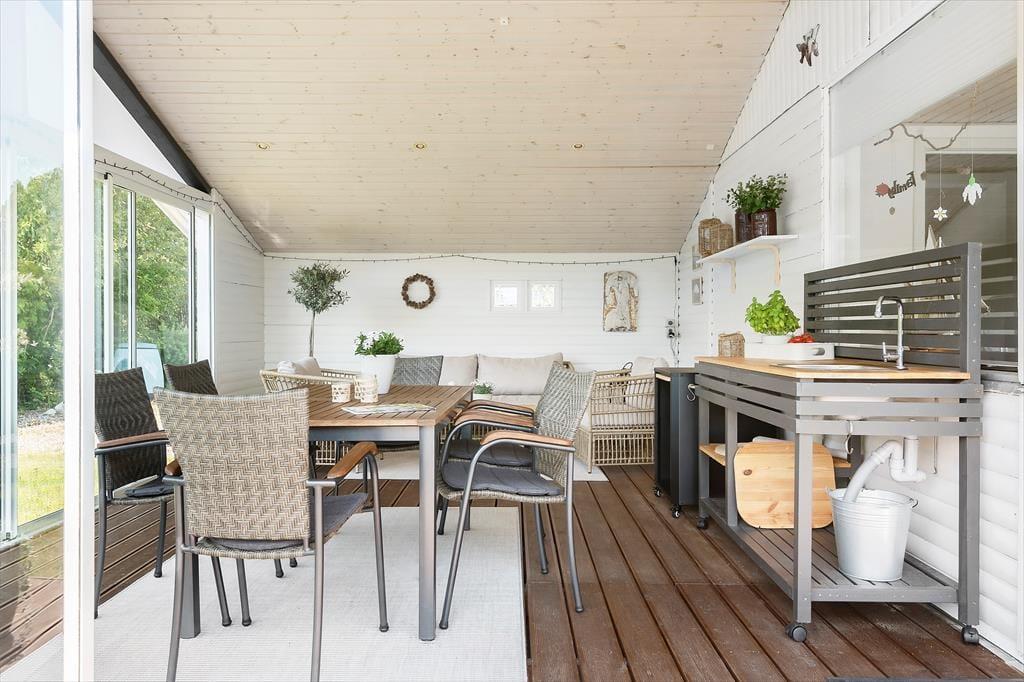 Hyggeligt og veludstyret hus på Enø nær Karrebæksminde med solrig have, udestue og børnevenlige faciliteter.
