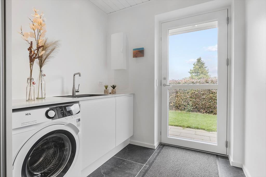 Velkommen indenfor: Fra entréen/bryggerset træder du ind i den store og lyse opholdsstue, hvorfra der er adgang til en delvist overdækket sydvendt terrasse. Det veludstyrede køkkenalrum har alt, hvad du behøver: Køleskab, separat fryser, induktionskomfur/ovn, mikrobølgeovn, opvaskemaskine samt en vinkøler. Huset har tre rummelige soveværelser med god skabsplads – ét med dobbeltseng og to værelser med enkeltsenge. Der er desuden en hyggelig alkove, hvor der er mulighed for 1-2 ekstra sovepladser. De to badeværelser er meget rummelige og komfortable. Huset er også udstyret med en centralstøvsuger.