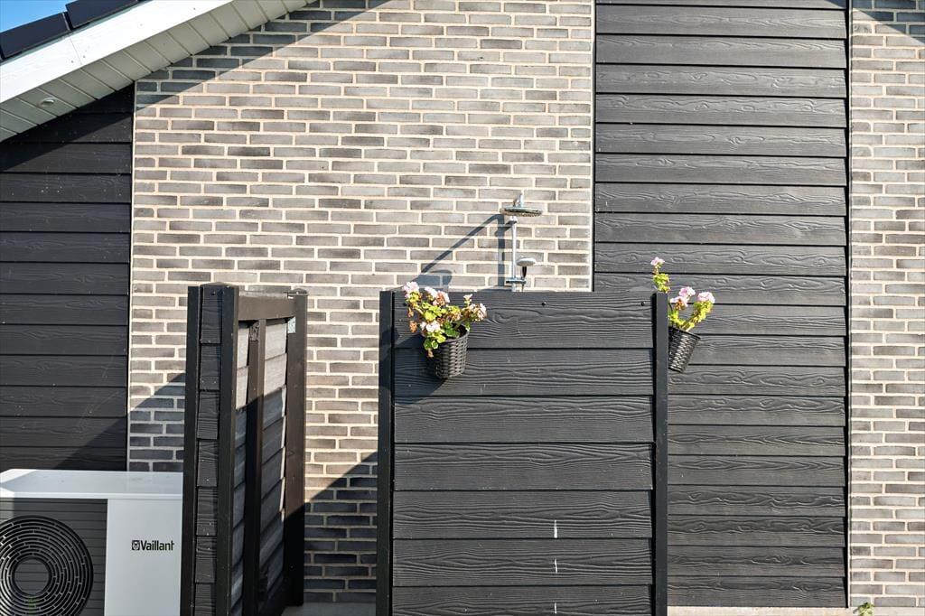 Nyd livet udenfor: Start dagen med en kop morgenkaffe på den solrige, sydvendte terrasse. Huset ligger på en 800 m2 naturgrund, der indbyder til afslapning i grønne omgivelser. Huset er placeret på en stille, lukket stikvej, hvor du kan finde ro og fred. Som en ekstra detalje er der en udendørs bruser med både varmt og koldt vand, perfekt til et opfriskende brusebad.
