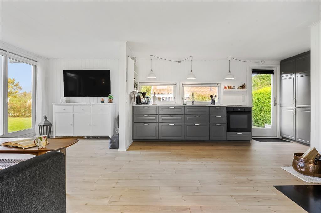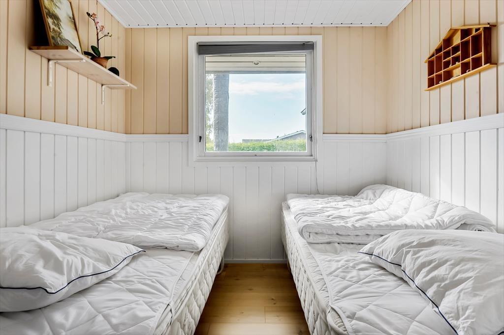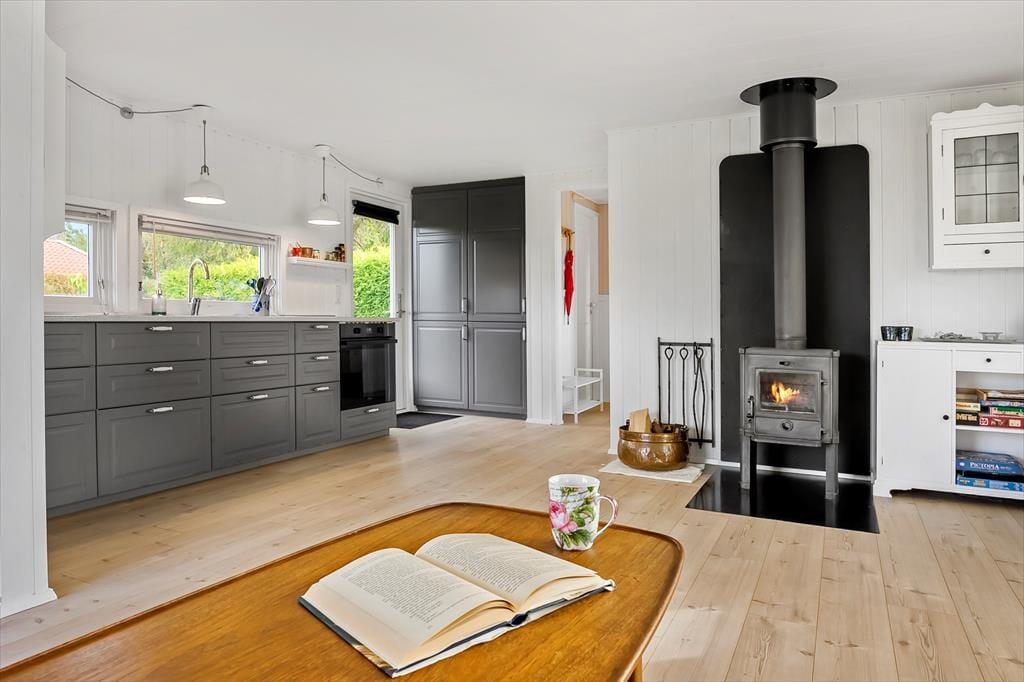 Velkommen indenfor: Via den store og lyse havestue, kommer man ind i opholdsstuen samt køkken-alrum. Køkkenet er udstyret med køleskab, fryser, el-komfur med ovn. Lys og moderne indrettet opholdsstue med udgang til 19 m2 stor og lys havestue, hvorfra der er udgang til den hyggelige have. Huset råder over 2 soveværelser, 1 med dobbeltseng (140x200) samt1 med 2 enkelt senge (90x200)Badeværelse med bruseniche, håndvask og toilet. På grunden er der opført nyt anneks som indeholder 1 dobbeltseng (180x200) , annekset er isoleret og udstyret med el-varme og lys. Tænd gerne op i brændeovnen på de køligere dage, og lad feriestemningen brede sig.
