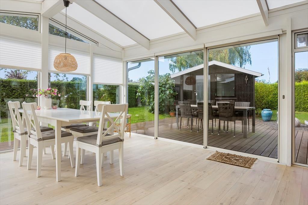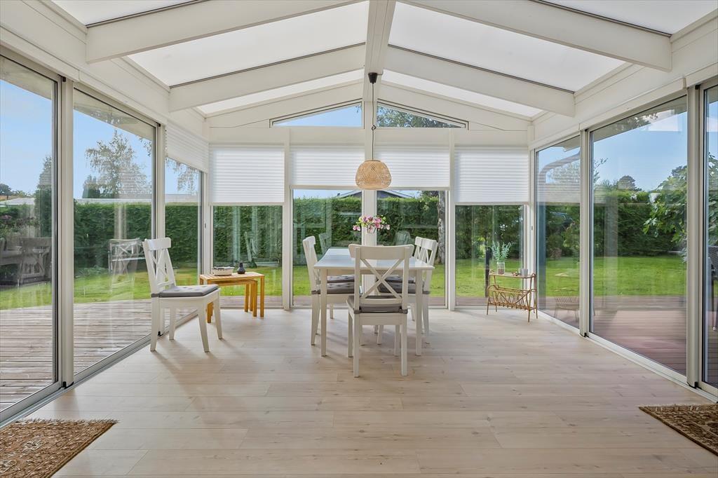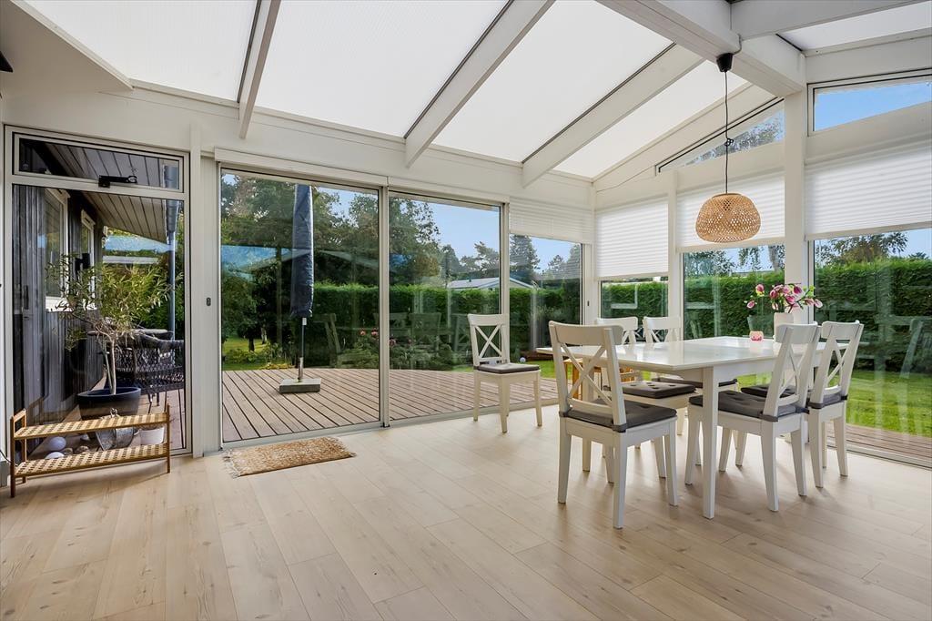 Nyd livet udenfor: Slap af og nyd haven fra en af husets solrige terrasser på den store 700 m2 grund. Der er endvidere 2 cykler til rådighed, så tag ud på en frisk cykeltur i det skønne naturrige område.