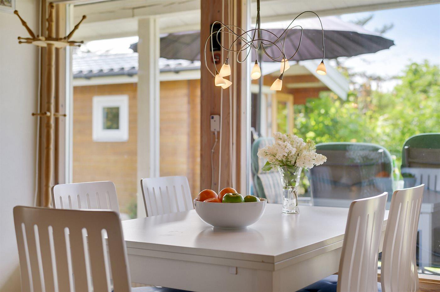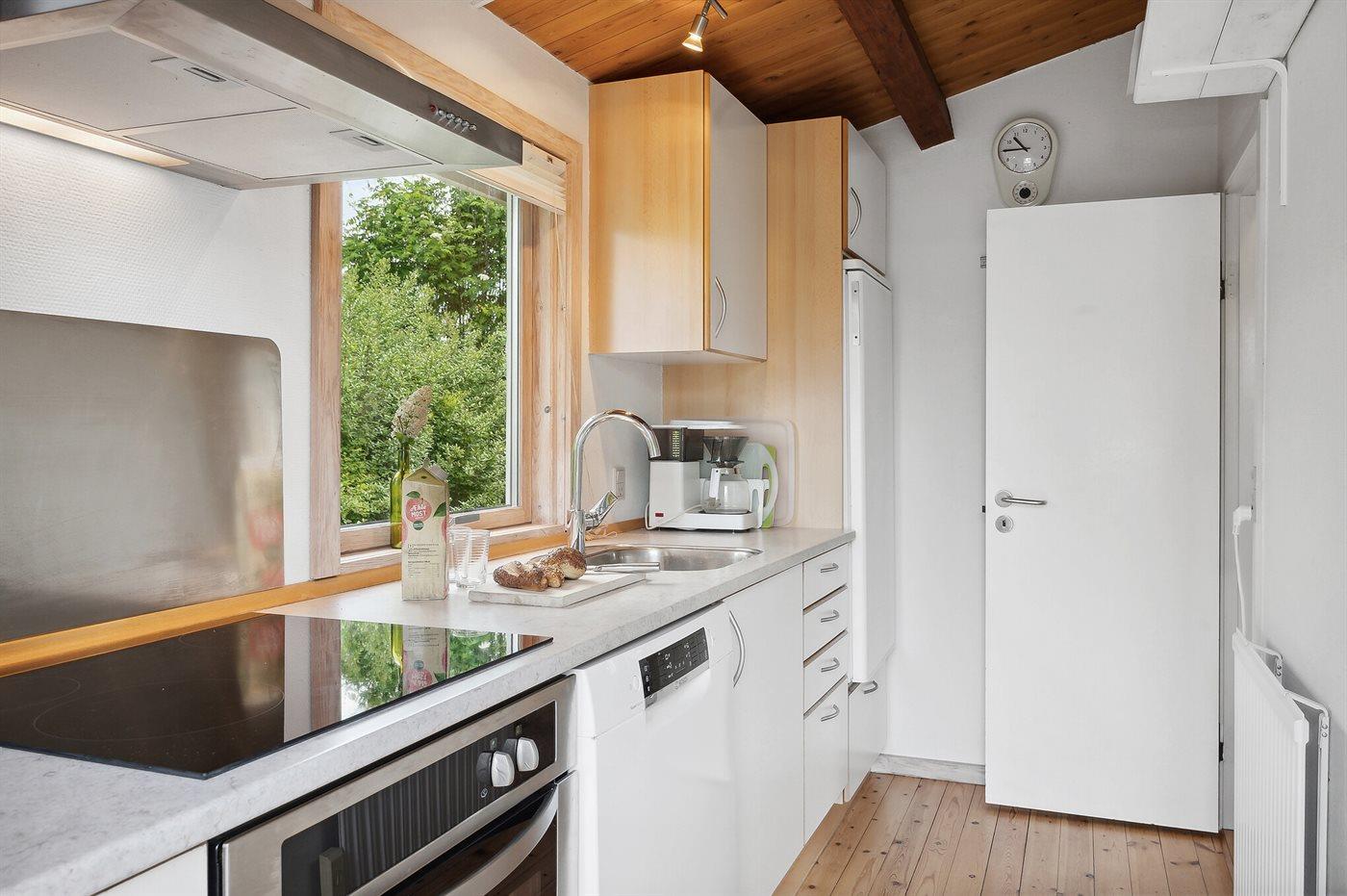 Køkkenet er moderne og veludstyret med alt, hvad du behøver til madlavningen – heriblandt køleskab, 100 liters frysekapacitet, fire keramiske kogeplader, varmluftovn, mikrobølgeovn og opvaskemaskine. Til de yngste gæster findes der en barnestol, så hele familien kan samles omkring måltiderne.