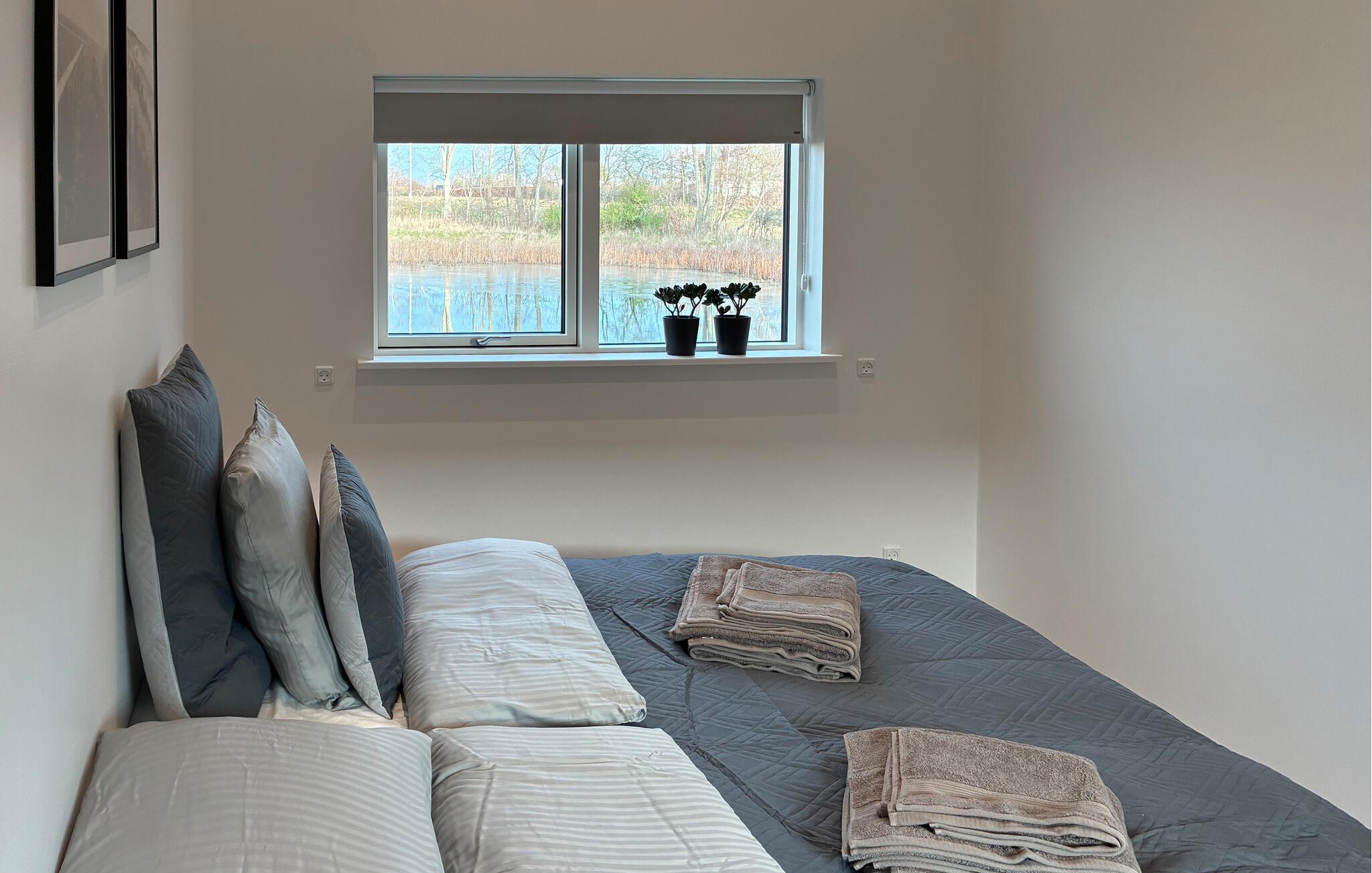 Moderne feriehus på Enø med aktivitetsrum, gårdhave og smuk udsigt til søen og naturen.