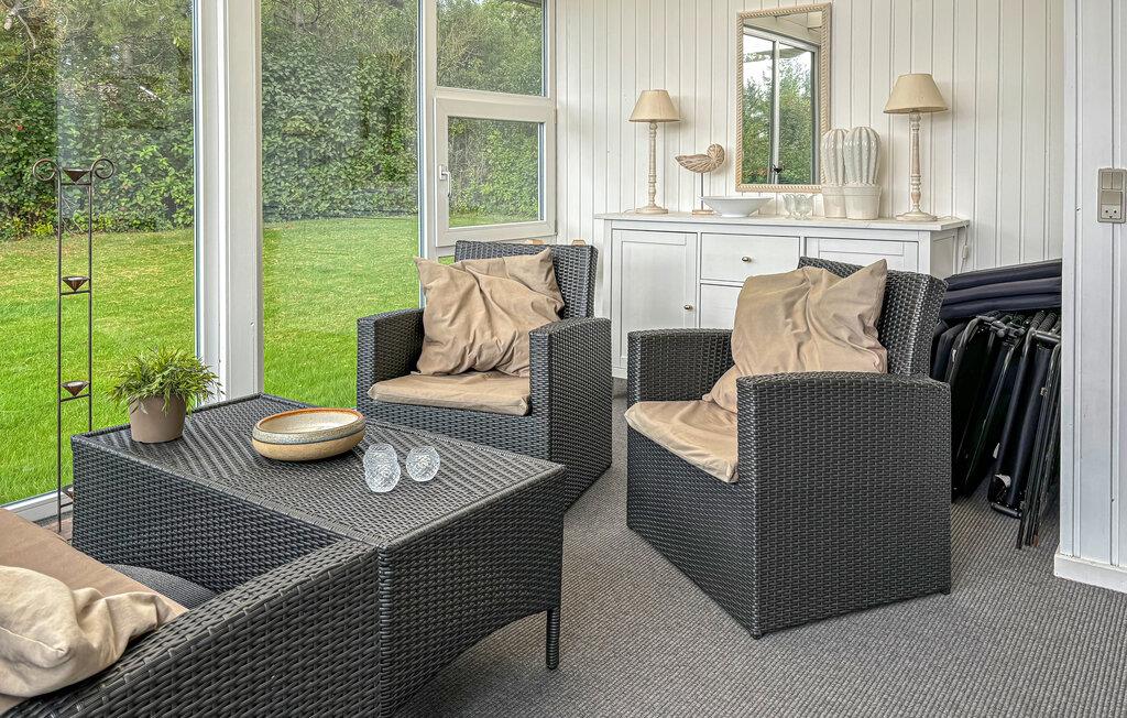 Dette hus byder jer velkommen med hygge og moderne elegance, så I hurtigt føler jer hjemme. Fra udestuen kan I nyde udsigten til det grønne og få en afslappet snak over en kop kaffe. Afslut dagen hyggeligt på sofaen ved brændeovnen, eller nyd den behagelige varme i saunaen.