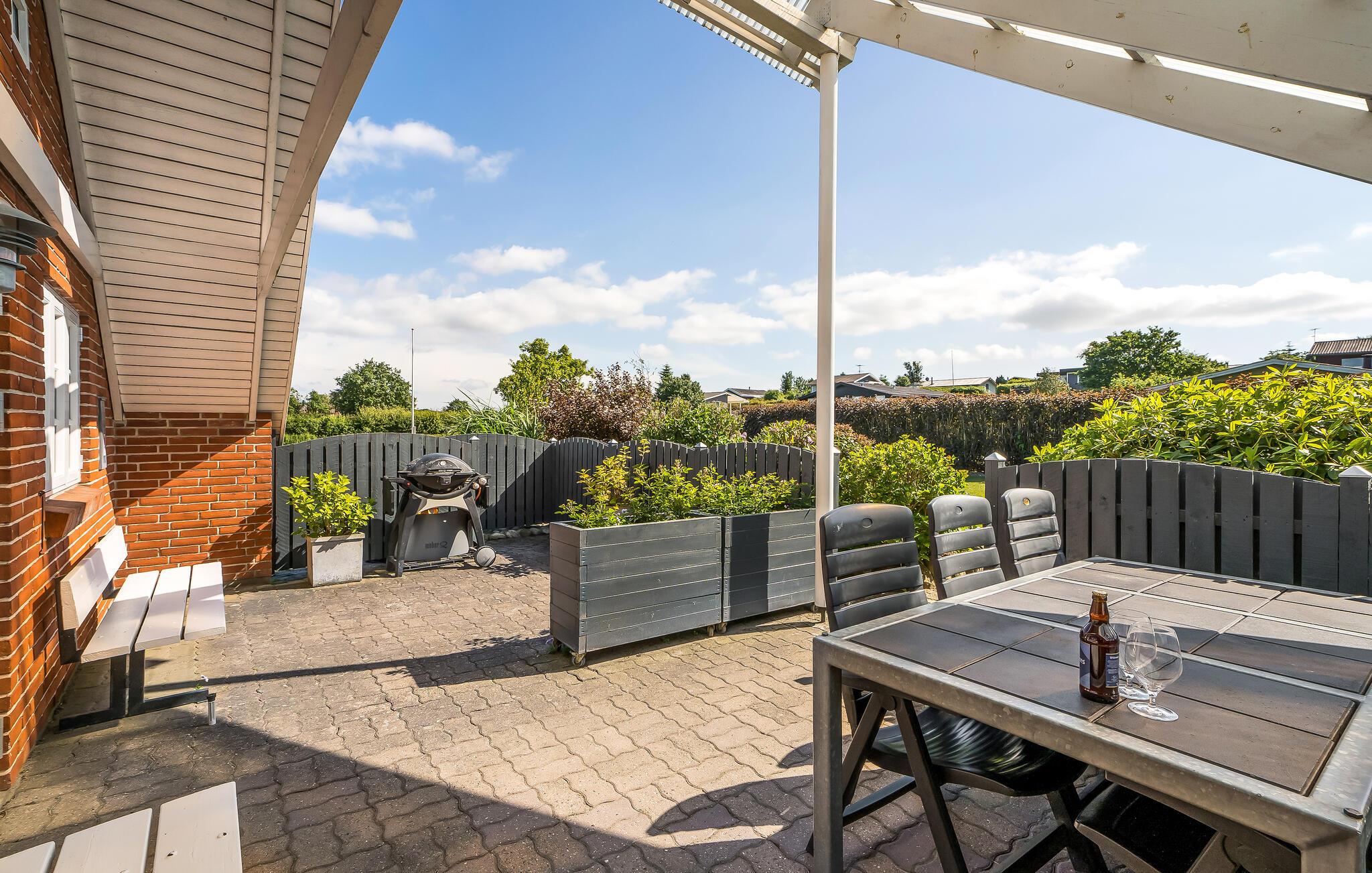 Nyd feriens måltider på den delvist overdækkede terrasse og lad ungerne lege i den store grønne have, hvor der også er en dejlig bålplads.