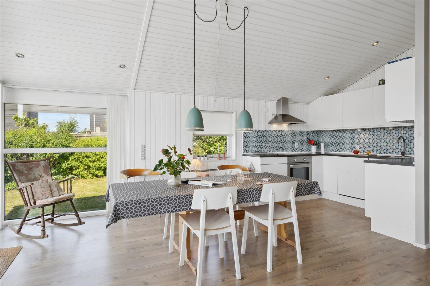 Køkkenet er udstyret med 1 køleskab. Der er 4 keramiske kogeplader, varmluftovn samt opvaskemaskine.
