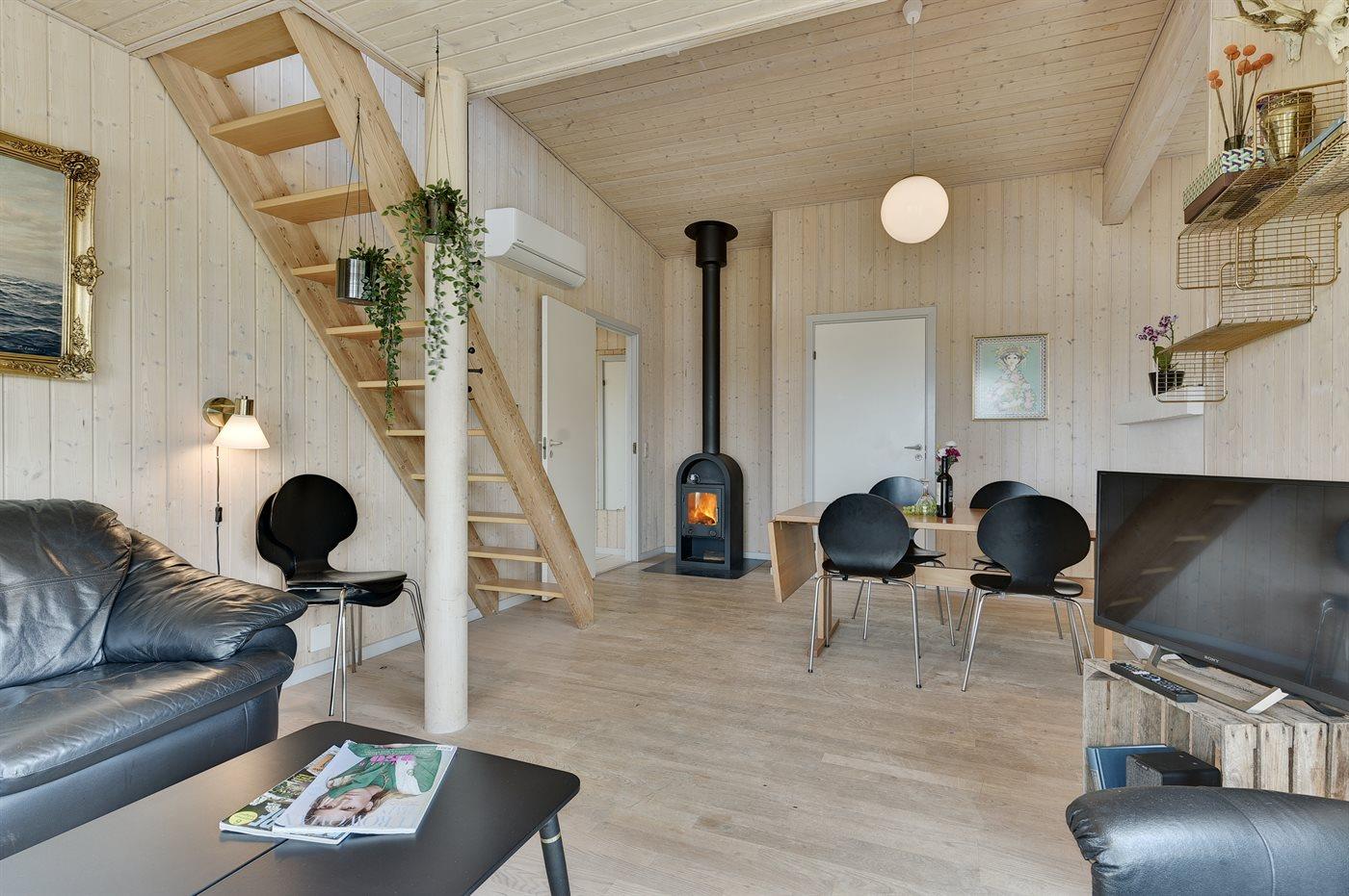 Sommerhuset egner sig til 8 personer samt 1 barn op til 3 år. Ferieboligen er på 102 m², er i 2 plan, og er bygget i 2004. Det er tilladt at medbringe 1 husdyr. Ferieboligen er udstyret med energibesparende luft til luft varmepumpe. Der er gulvvarme i alle klinkegulve. Der er gulvvarme i entréen. Ferieboligen har vaskemaskine. Tørretumbler. Frysekapacitet på 30 liter. Der er desuden brændeovn. Til de små er der 1 stk. barnestol.