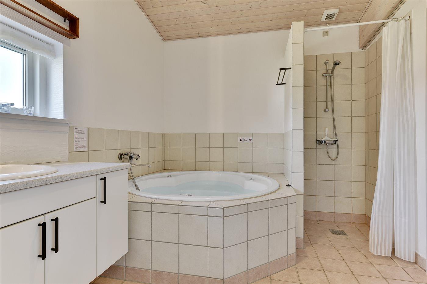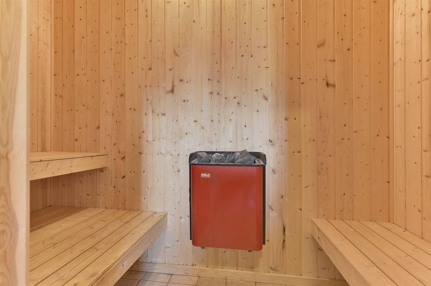 Der er 2 badeværelser med bruseniche og 2 toiletter. Der er gulvvarme på 2 badeværelser. I saunaen er der mulighed for afslapning.