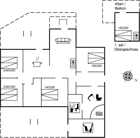 Der er i alt 4 soveværelser. Sovepladserne fordeler sig på: 4 sovepladser i dobbeltsenge. 4 sovepladser i enkeltsenge. Derudover er der 1 stk. barneseng.