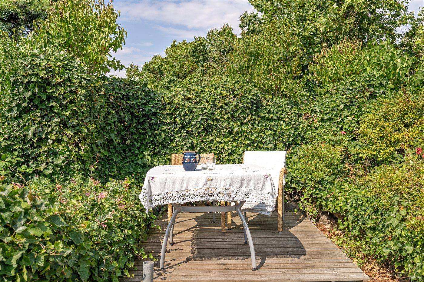 Ferieboligen er beliggende på en 262 m² stor havegrund. Der er 25 m til havet. Der er en badebro i nærheden. Nærmeste forretning er beliggende i en afstand af 4800 m. Der er en golfbane i en afstand af 9000 m. Til ferieboligen hører åbent terrasseareal. Udendørs bruser. Grill til rådighed. Der er installeret stik til opladning af elbil. CEE stik. Parkering ved ferieboligen.
