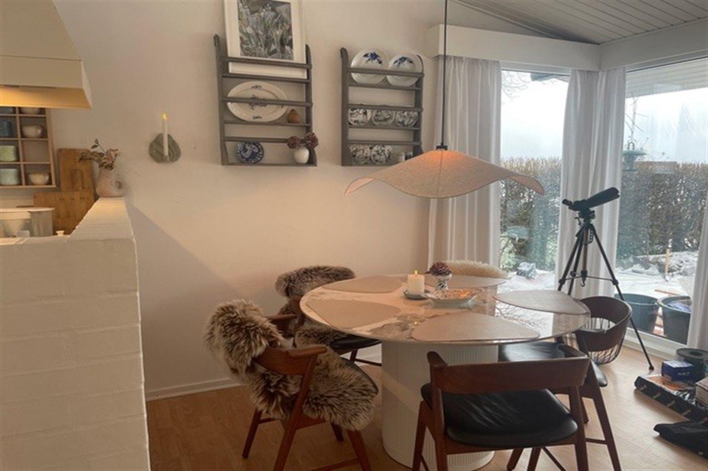 Køkkenet er udstyret med 1 køleskab. Der er 4 keramiske kogeplader, varmluftovn samt opvaskemaskine.