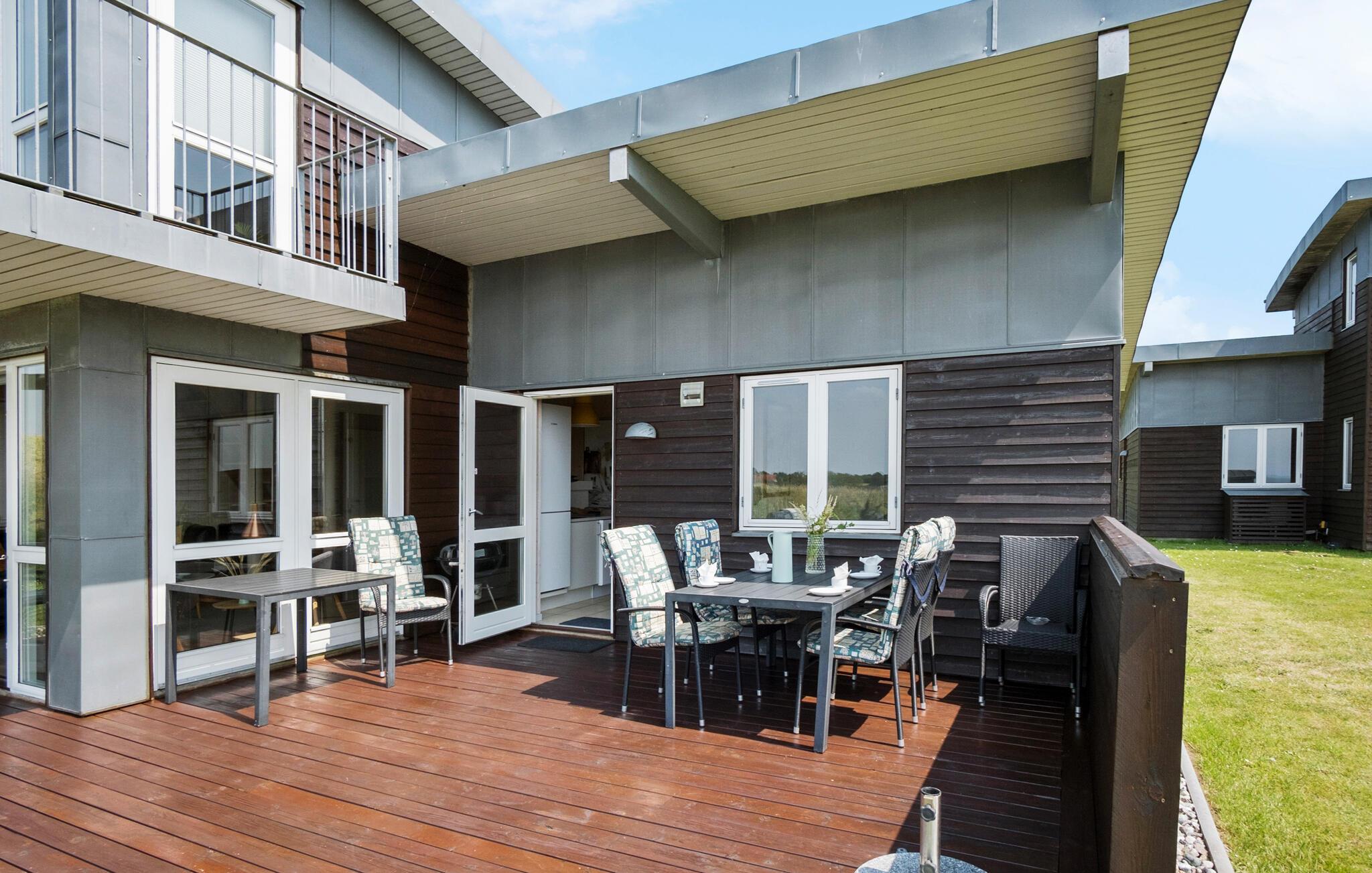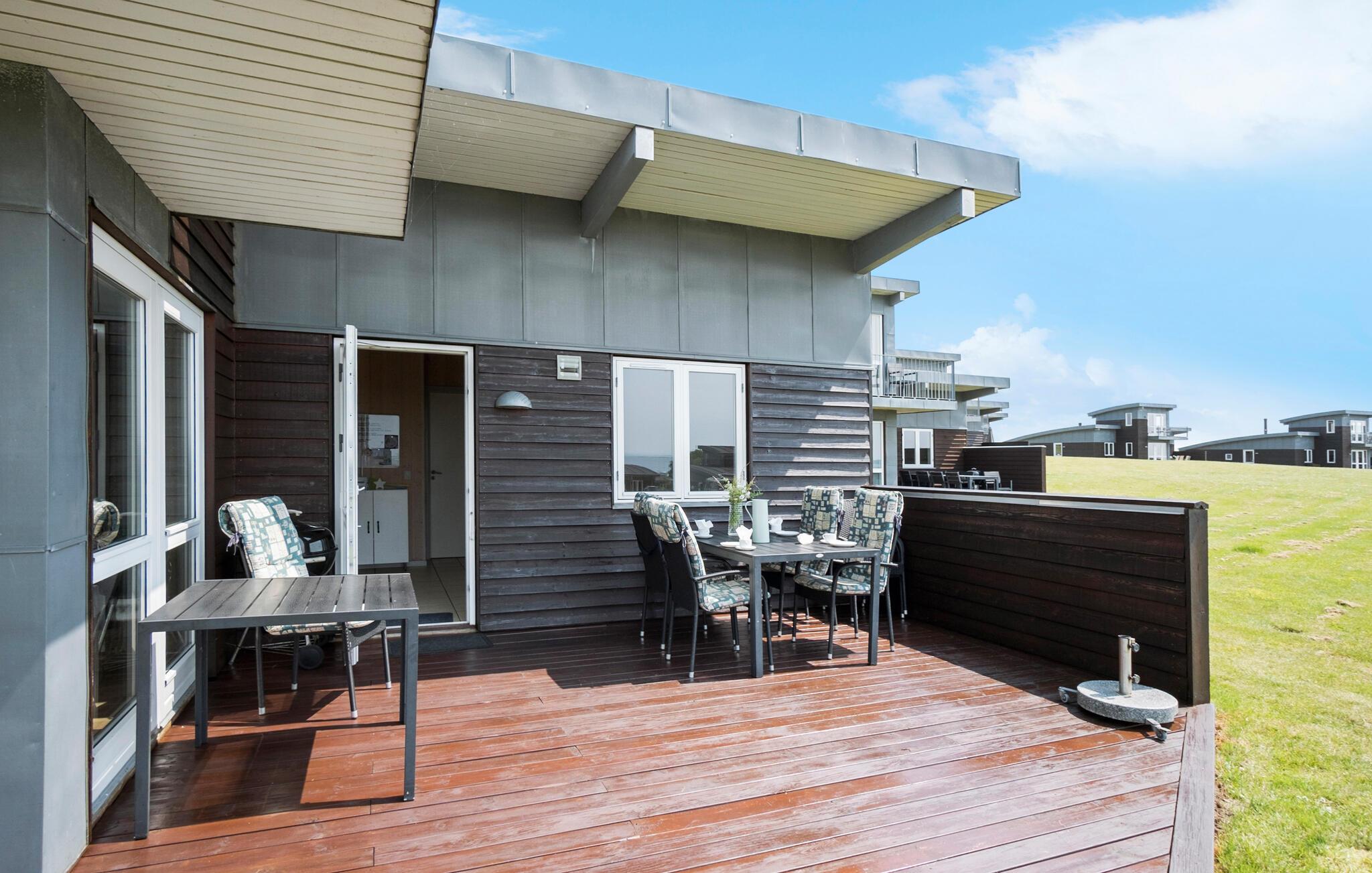 Feriehuset byder på en 50 m² åben terrasse med grill til rådighed. Huset er beliggende på en dejlig, ugeneret grund for enden af en lukket vej med udsigt til både hav og mark. Der er mulighed for parkering ved huset, og I har kun 300 m til stranden.