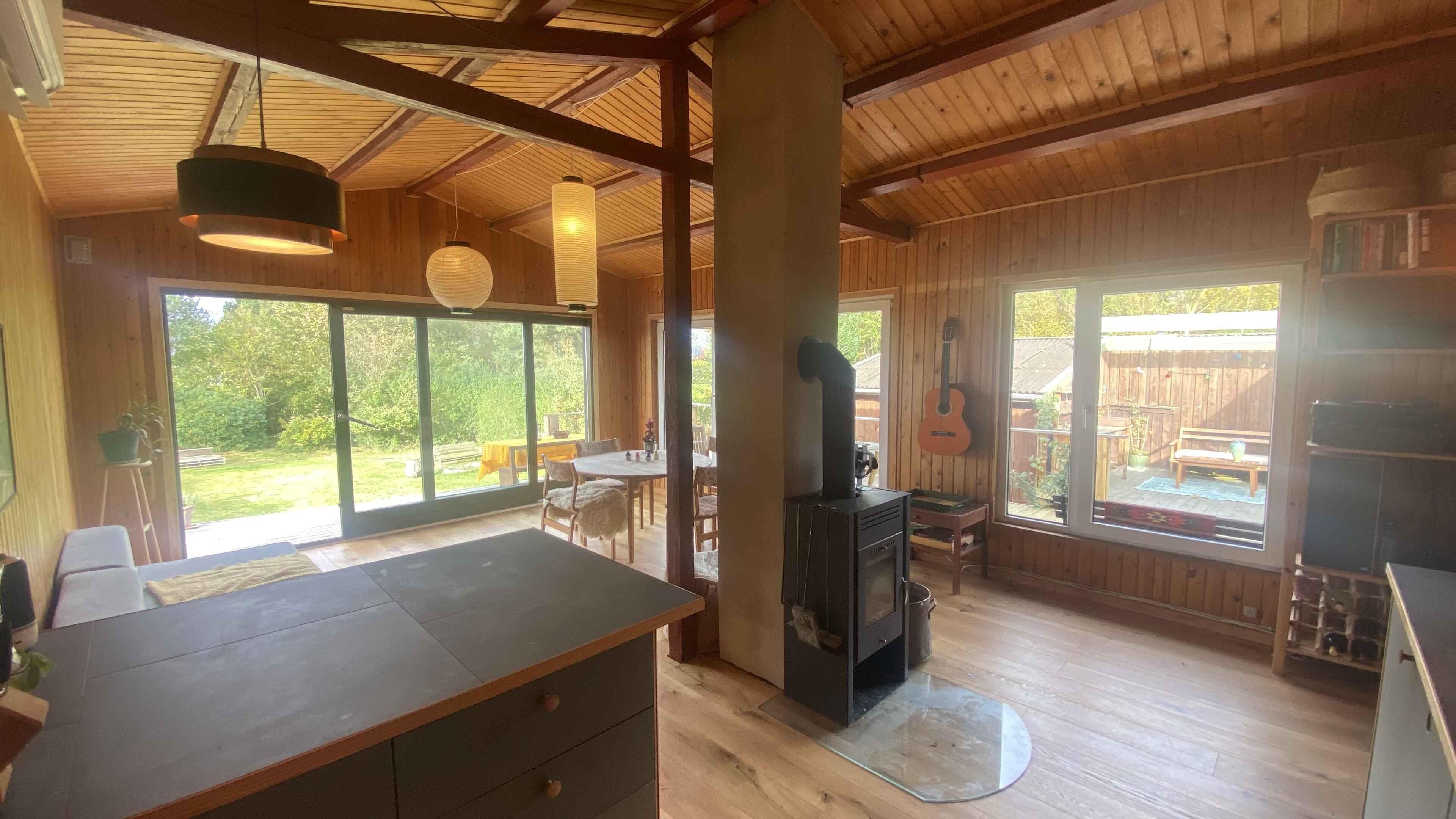 Træd ind i et nostalgisk fristed i dette enkle, men charmerende sommerhus fra 1960'erne, hvor enkelhed møder varme og karakter. Beliggende i rolige omgivelser med en stor privat have, tilbyder dette hjem en afslappende ferie med en skøn atmosfære. Rummeligt, åbent køkken og stue – fuldt møbleret og perfekt til madlavning, spisning og afslapning Hyggelig brændeovn der skaber varme og stemning. Der er også internet, så man kan holde kontakten med omverdenen. Store vinduer og døre ud til terrassen, hvor du kan nyde solnedgange, stjernehimmel og havudsigt i horisonten Der er to soveværelser - soveværelse 1 med en stor dobbeltseng og soveværelse 2 med en køjeseng. Bemærk adgang til soveværelse 2 er gennem soveværelse 1 Dette er vores familiehus, som vi har renoveret lidt efter lidt gennem årene. Det er et sted til at leve, slappe af og bare være. Hvis du søger et enkelt hus, hvor du kan koble af og ikke har noget imod, at der mangler lidt finish hist og her, så er dette stedet for dig. Vi sætter pris på gæster, der er afslappede og kan gøre sig selv hjemme. Ideelt til par, små familier eller venner. En charmerende, afslappet atmosfære med et strejf af vintage og enkelte ufærdige detaljer, der giver huset sjæl. I finder også flere udendørs opholdsområder, så du altid kan finde sol eller skygge i løbet af dagen. 1 km til Ordrup – en hyggelig ferieby med supermarked, hjemmelavet is og restauranter 3 km til Ordrup Næs – en af Danmarks smukkeste sandstrande, med flere naturskønne strande i nærheden Fredelige omgivelser, perfekte til at koble fra, udforske naturen og nyde lange, langsomme sommerdage Hvis du søger et enkelt og hjemligt fristed med en afslappet, bohemeagtig stemning, vil du elske dette hus. Vi glæder os til at byde dig velkommen! Obs, udlejes ikke til erhversmæssigt brug.