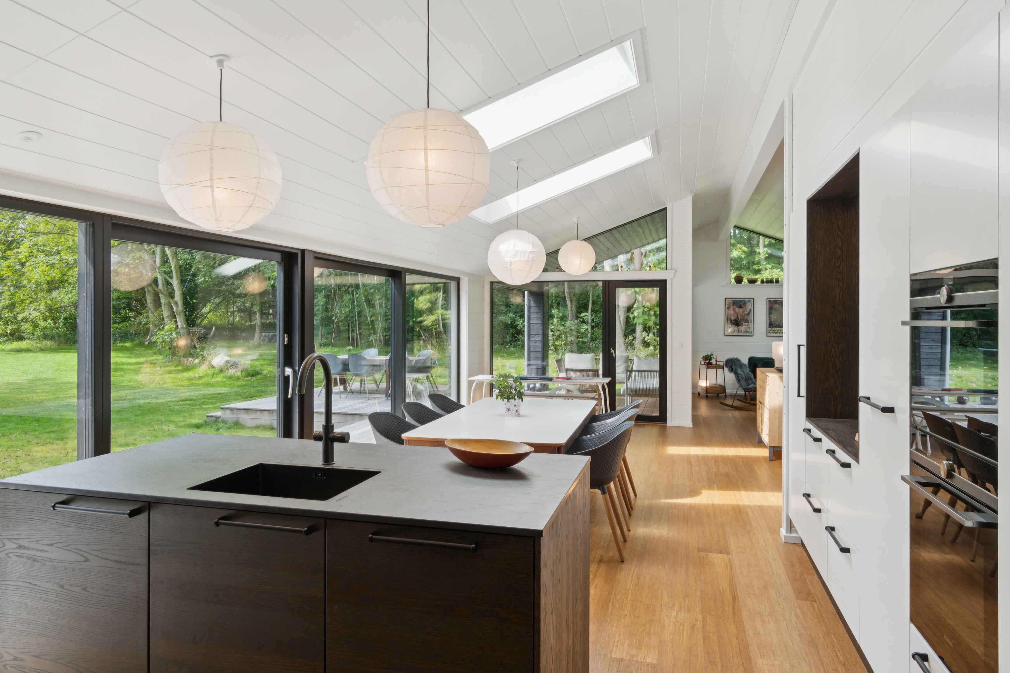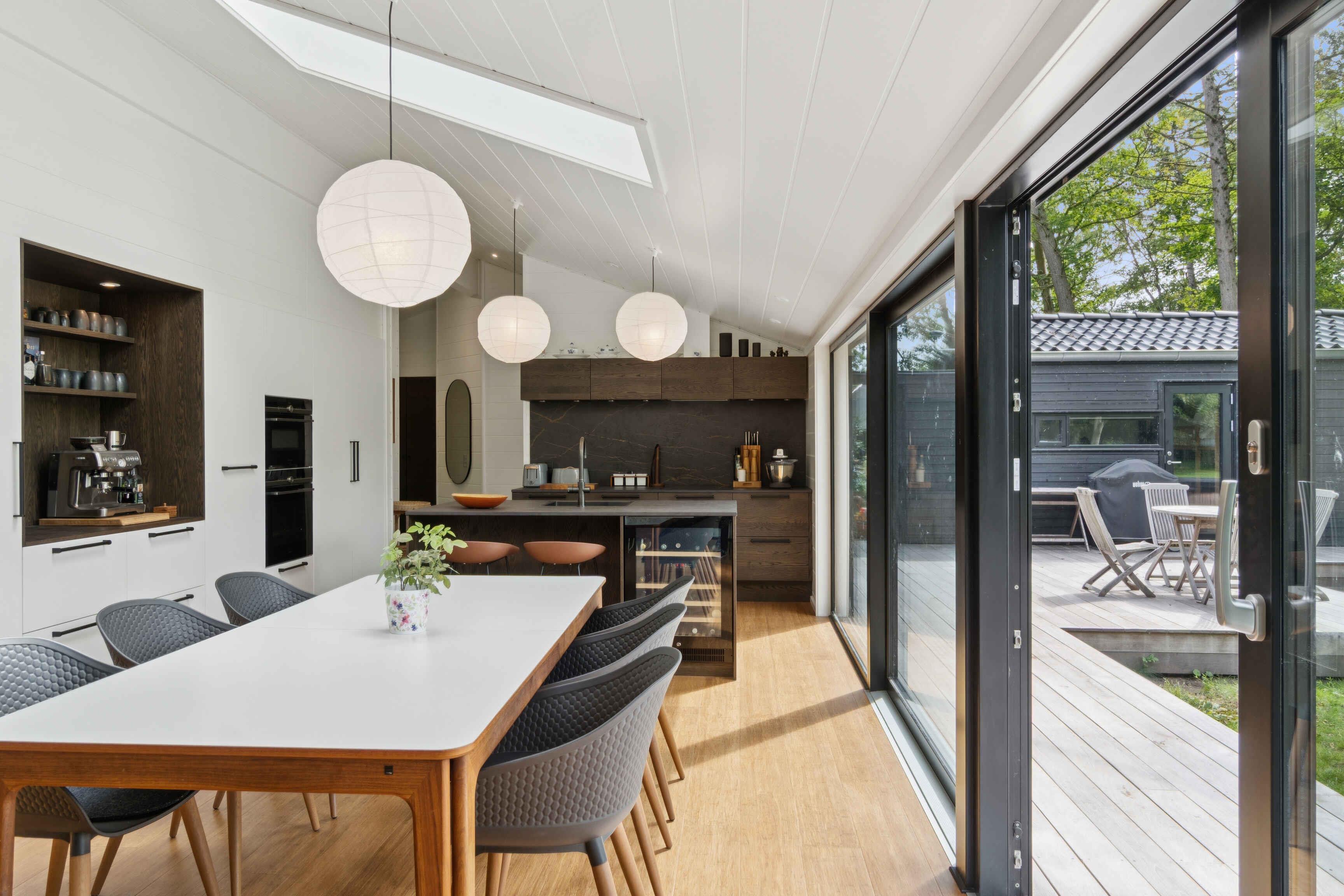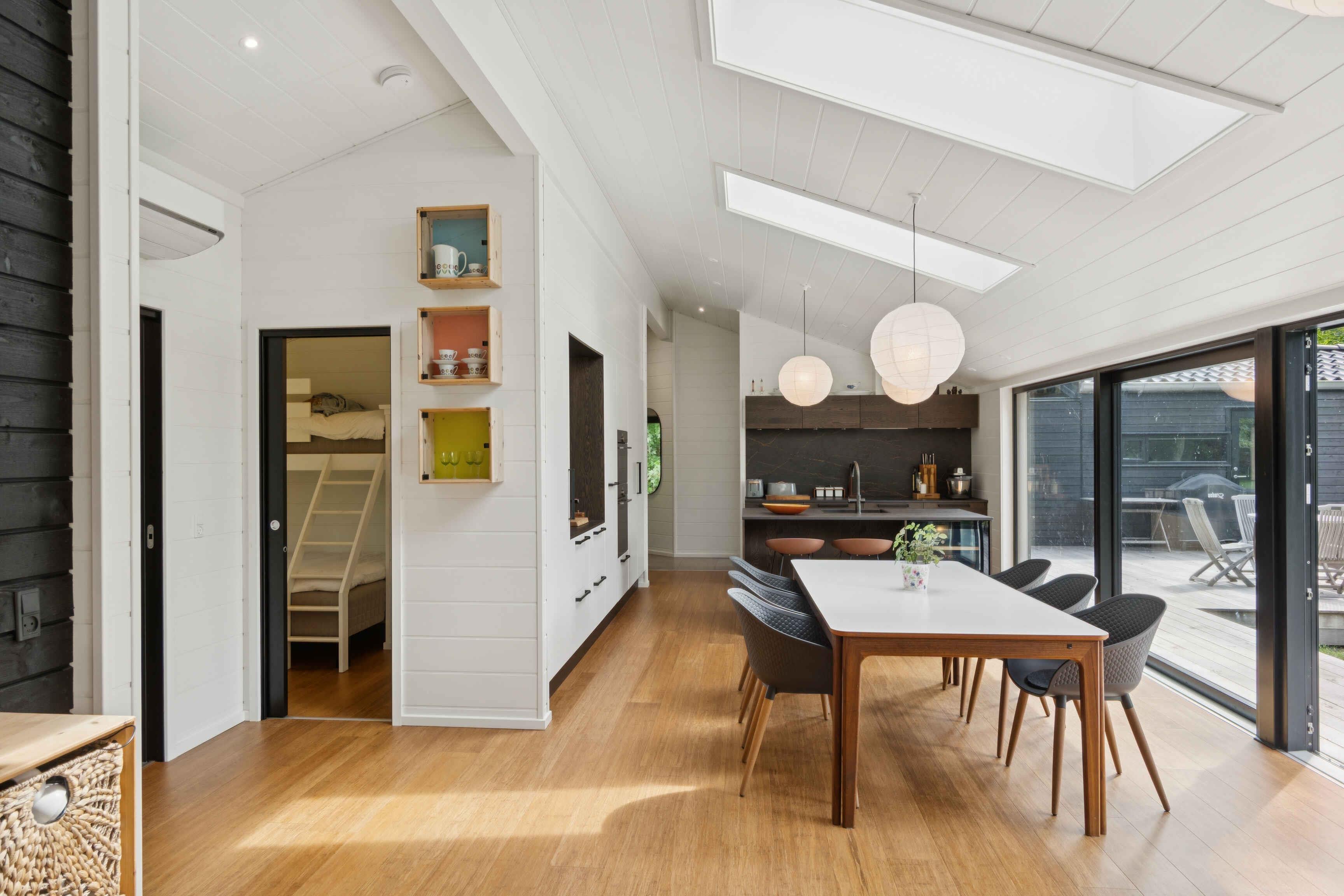 Dette sommerhus på 145 m² giver plads til både store og små ferieselskaber. Med fem soveværelser og ti sengepladser er her god plads til familier eller venner, der ønsker at tilbringe ferien sammen. Tre værelser ligger i hovedhuset, mens annekset rummer et ekstra. Indretningen er lys og praktisk med varmepumpe og brændeovn, som gør huset velegnet året rundt. Internet giver mulighed for både arbejde og underholdning, så ferien kan kombineres med hverdagens behov. To badeværelser gør opholdet komfortabelt, og det ene er indrettet med badekar. Hertil kommer både sauna og udendørs vildmarksbad, som skaber mulighed for velvære i afslappede rammer. Fra stuen er der udgang til en rummelig terrasse, hvor man kan spise ude eller nyde solen. Grunden er stor og ugenert med en stor græsplæne, der indbyder til boldspil, leg og aktiviteter for hele familien. Kun 700 meter fra huset ligger kysten, hvor stranden giver mulighed for badeture, strandlege og gåture langs vandet. Afstanden gør det nemt at lade havet blive en del af hverdagen under opholdet. Området er særligt attraktivt for feriegæster, fordi natur og oplevelser ligger side om side. Skoven tæt på huset byder på flere legepladser, som er et hit for børn. Stier i området gør det oplagt at cykle eller gå ture i grønne omgivelser. Odsherred er kendt for sin særlige natur og er udpeget som UNESCO Geopark. Her kan man opleve et varieret landskab med bakker, marker og kyst. Derudover byder området på små gårdbutikker, lokale råvarer, gallerier og hyggelige spisesteder. Alt sammen inden for kort afstand. Med kombinationen af moderne faciliteter, wellnessmuligheder og en beliggenhed tæt på både strand og skov, er dette hus et ideelt valg. Det rummer alt, hvad der skal til for en ferie, hvor ro, fællesskab og aktiviteter går hånd i hånd.
