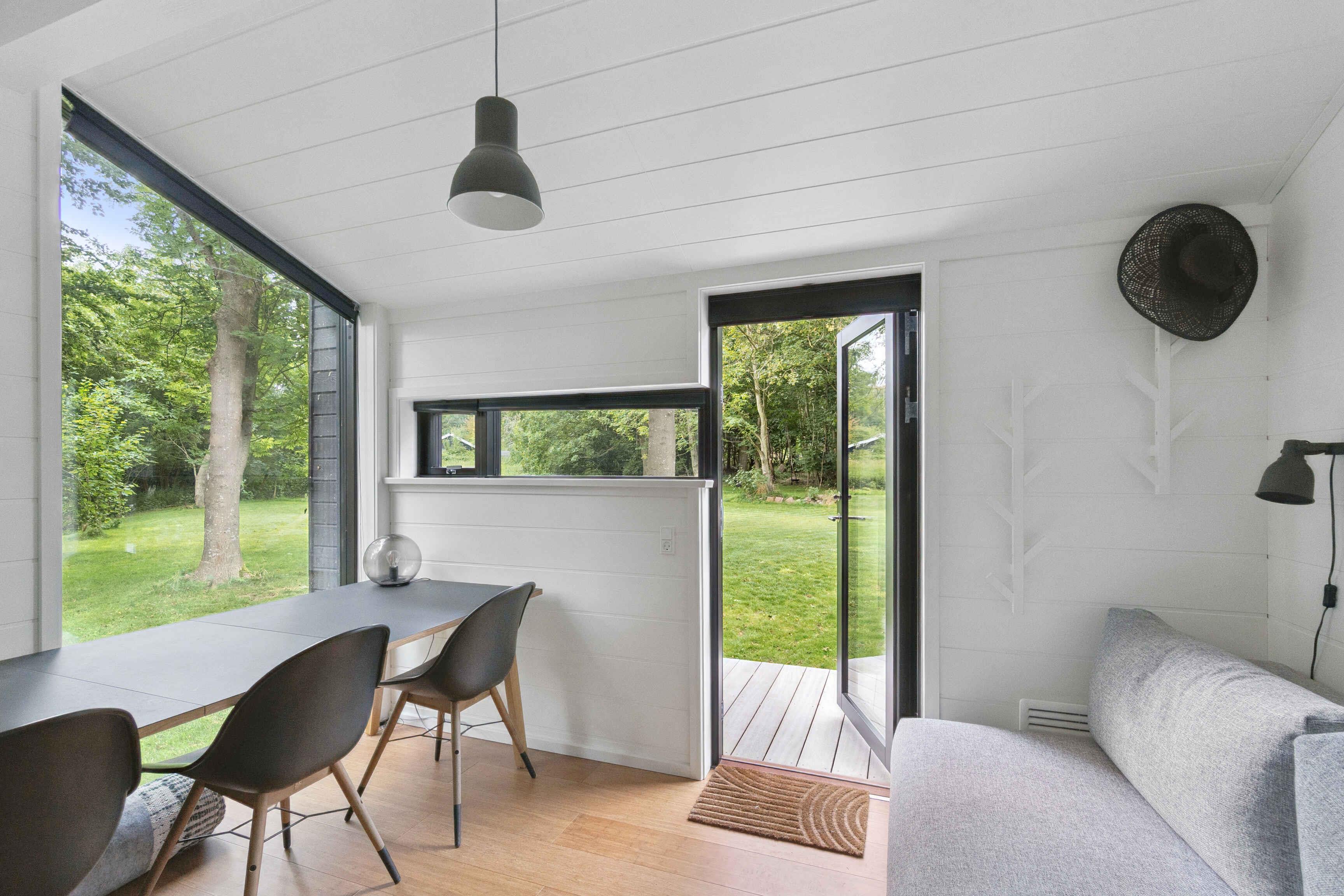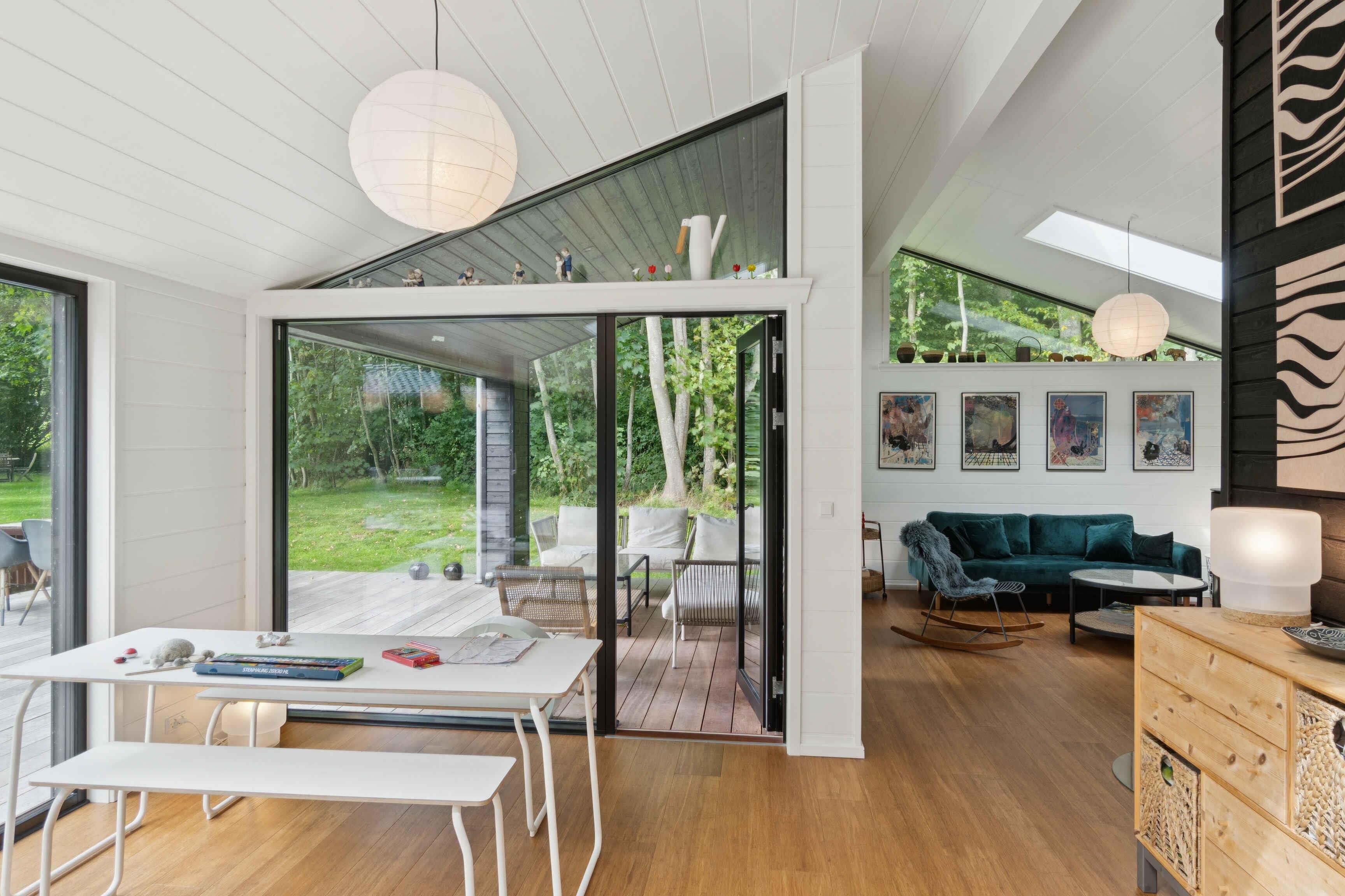Lyst sommerhus i Fårevejle med sauna, vildmarksbad og tæt på strand, skov og aktiviteter.