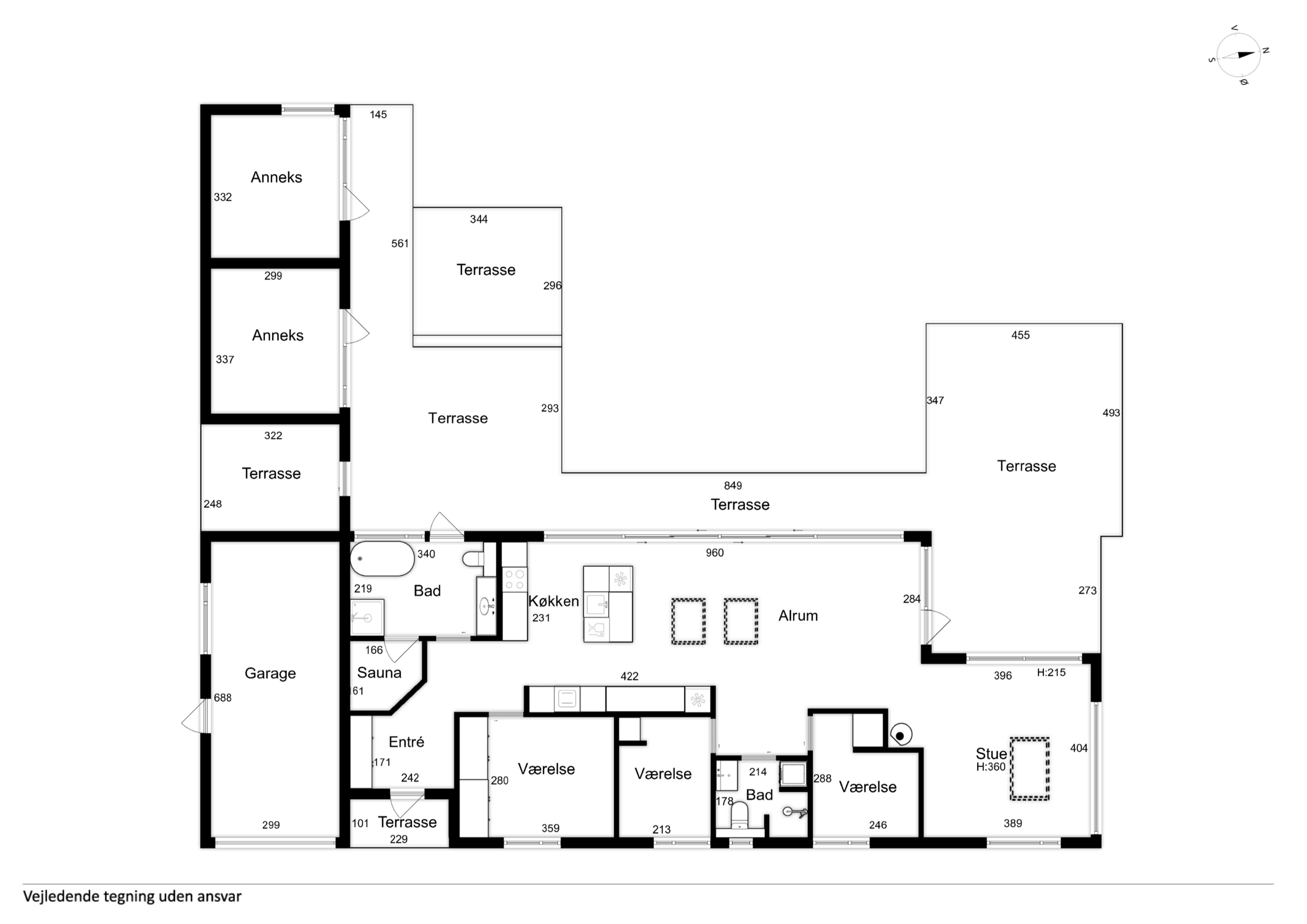 Dejligt lyst sommerhus, 3 soveværelser i hovedhuset, 1 soveværelse i anneks, vildmarksbad, varmepumpe, brændeovn, internet, sauna, 2 badeværelser det ene med badekar, ligger på stor ugenert grund i eksklusivt område, stor græsplæne med plads til leg