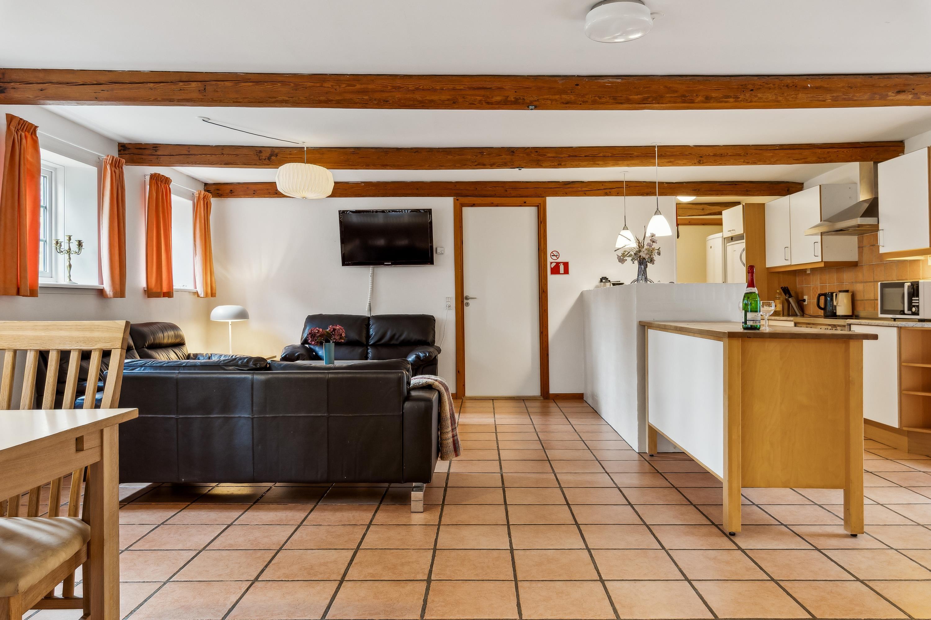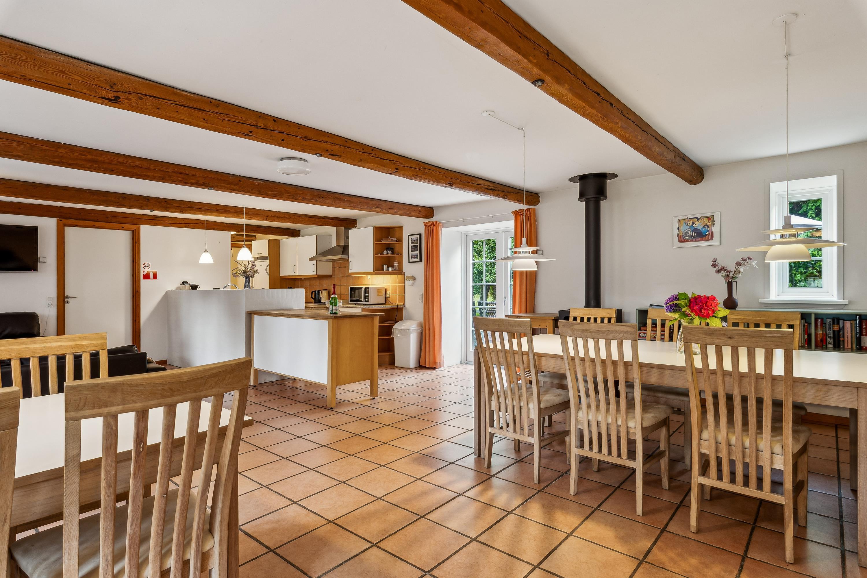 Feriebolig Øst er en smule mindre end Hovedbygningen, da der her er plads til mellem 16-18 overnattende gæster. Her har I et stort køkkenalrum til rådighed samt en hyggelige stue, hvor I kan slappe af. Også her er der terrasse med udsigt samt legefaciliteter, grillplads og adgang til fællesområderne på Røndegaard.