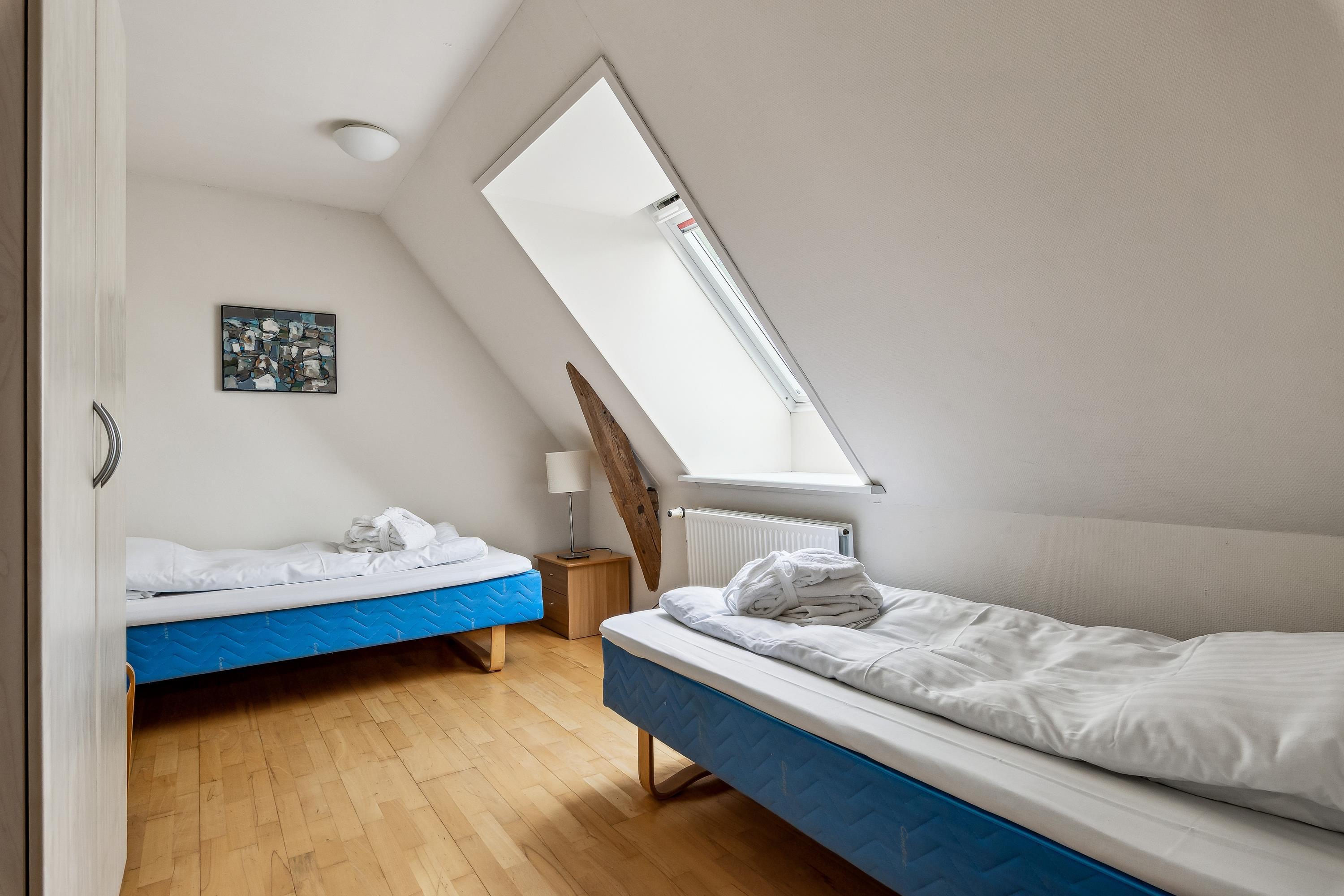 Feriebolig Øst ved Følle Strand tilbyder plads til 18 gæster, stor terrasse, legeplads og fælles faciliteter på Røndegaard.