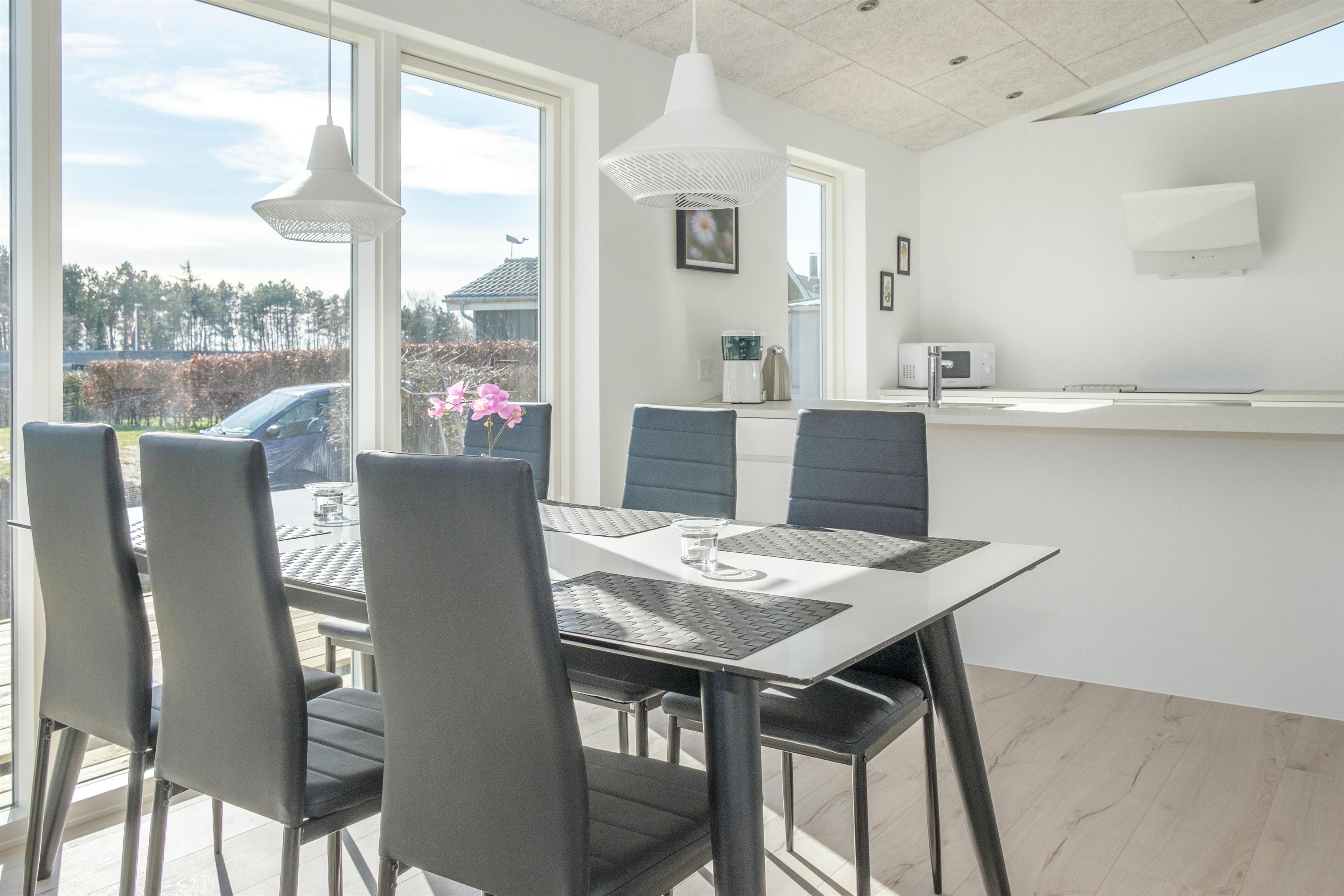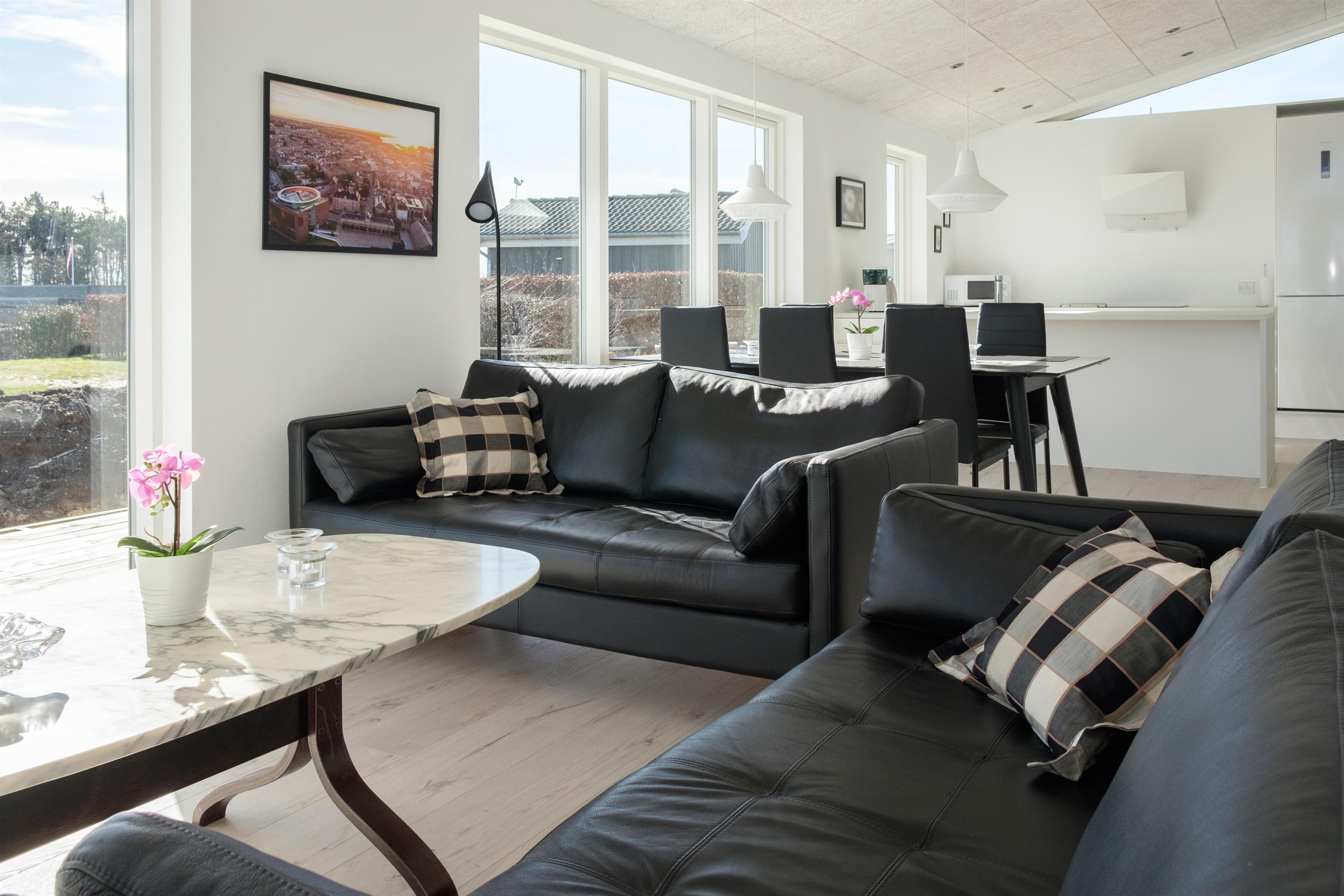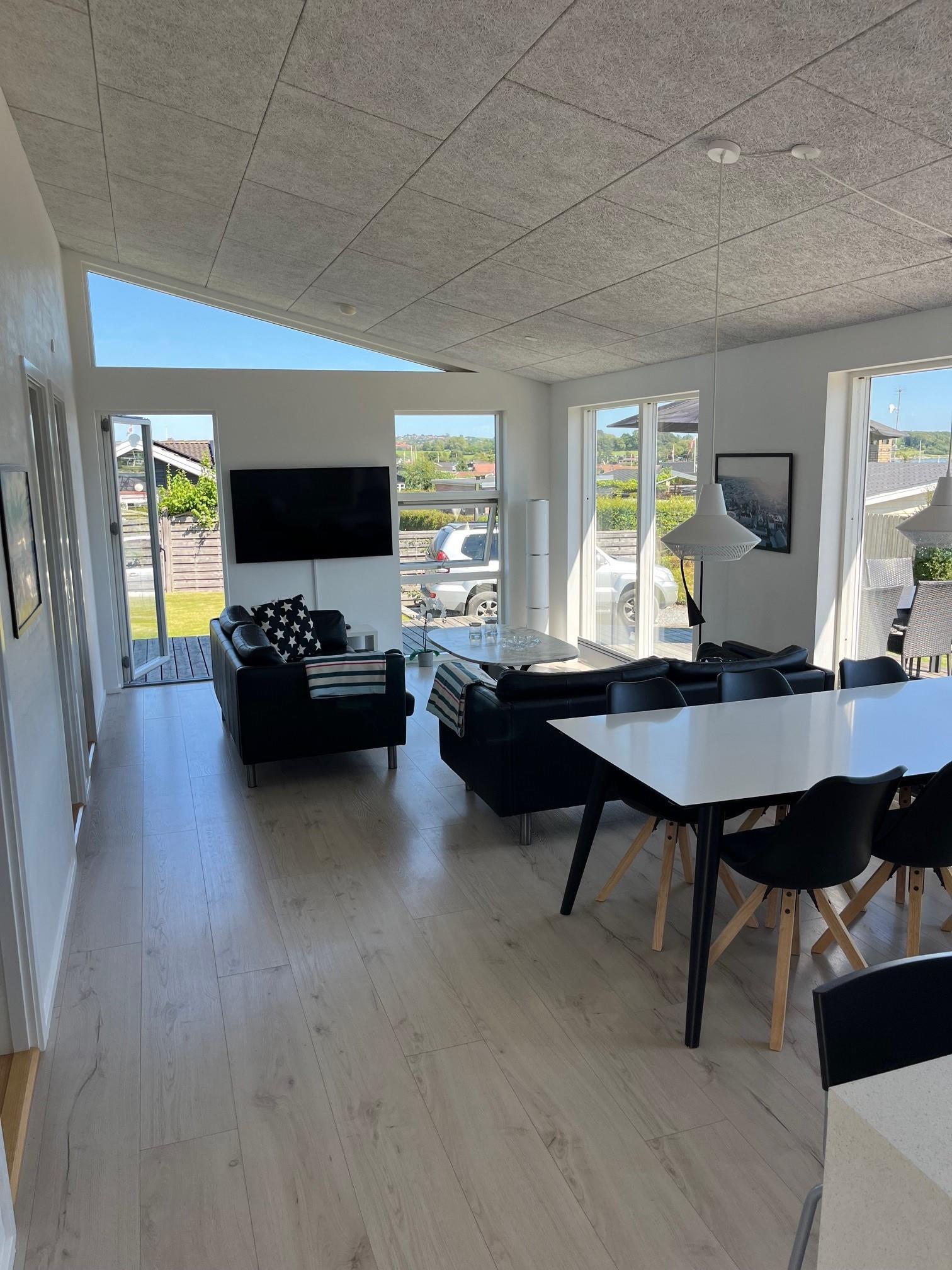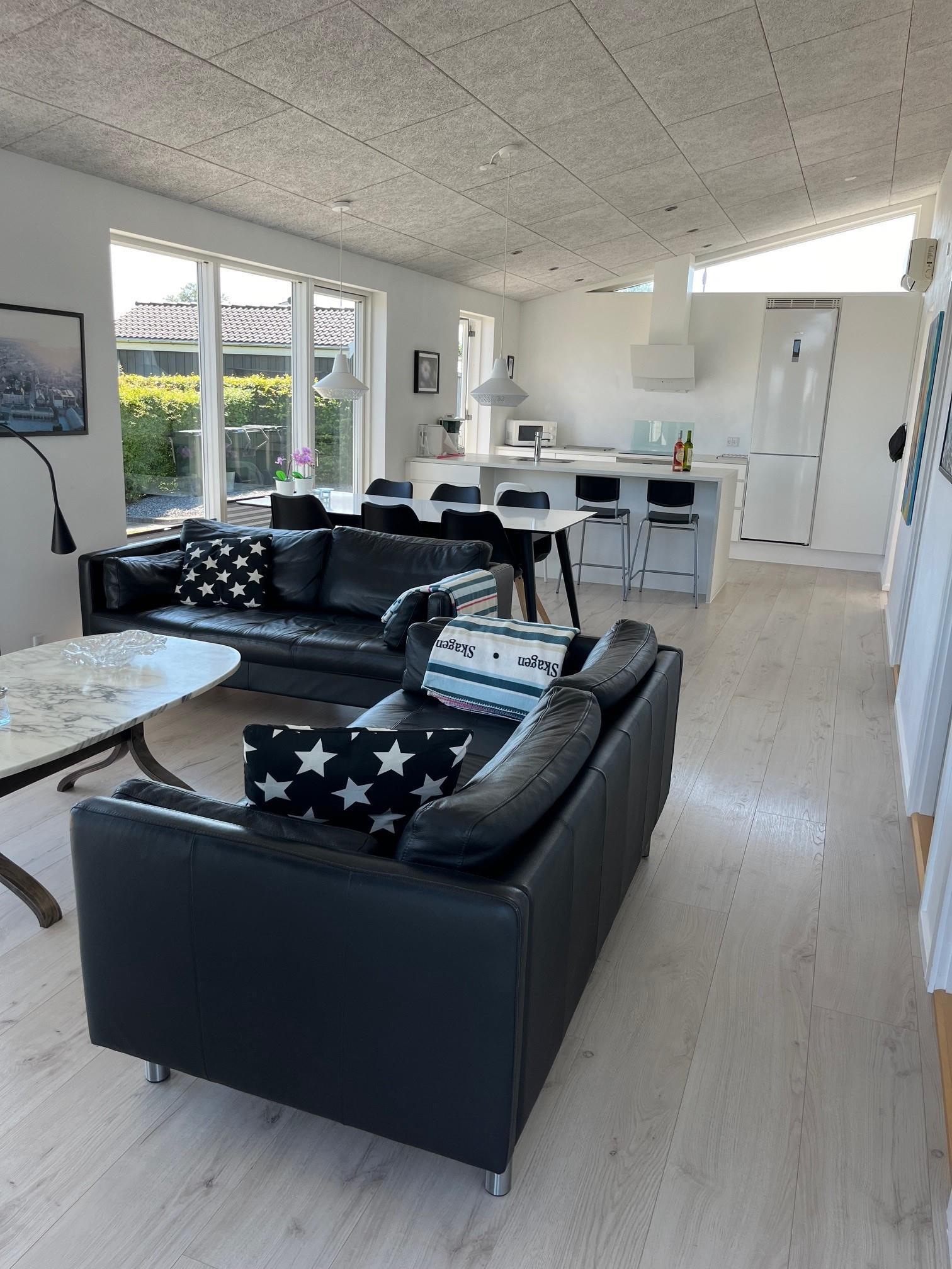 Den store, lyse stue ligger i åben forbindelse med køkkenet og er flot møbleret. De store vinduespartier giver fuld udsigt fra både spiseafdelingen til 6 personer og det indbydende sofahjørne, som har TV med danske (inkl. TV2) og tyske kanaler samt radio. Lækkert og veludstyret køkken med køle-/fryseskab, induktionskomfur, ovn, opvaskemaskine og mikrobølgeovn. De i alt 6 sovepladser fordeler sig på 3 dejlige værelser, 1 med dobbeltseng og 2 med 2 enkeltsenge. Lyst og rummeligt badeværelse med gulvvarme og bruseniche samt vaskemaskine og tørretumbler. Desuden gæstetoilet. Der er internetadgang.