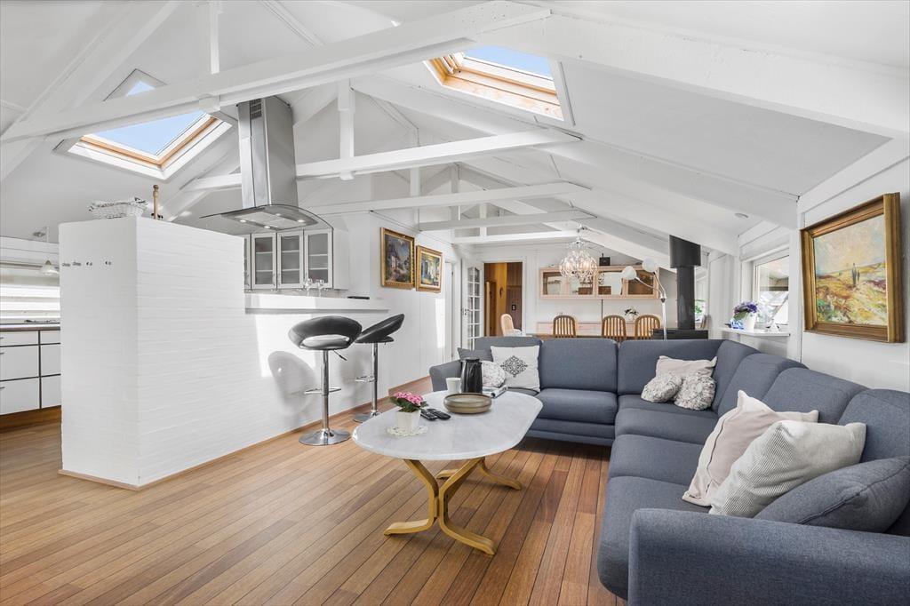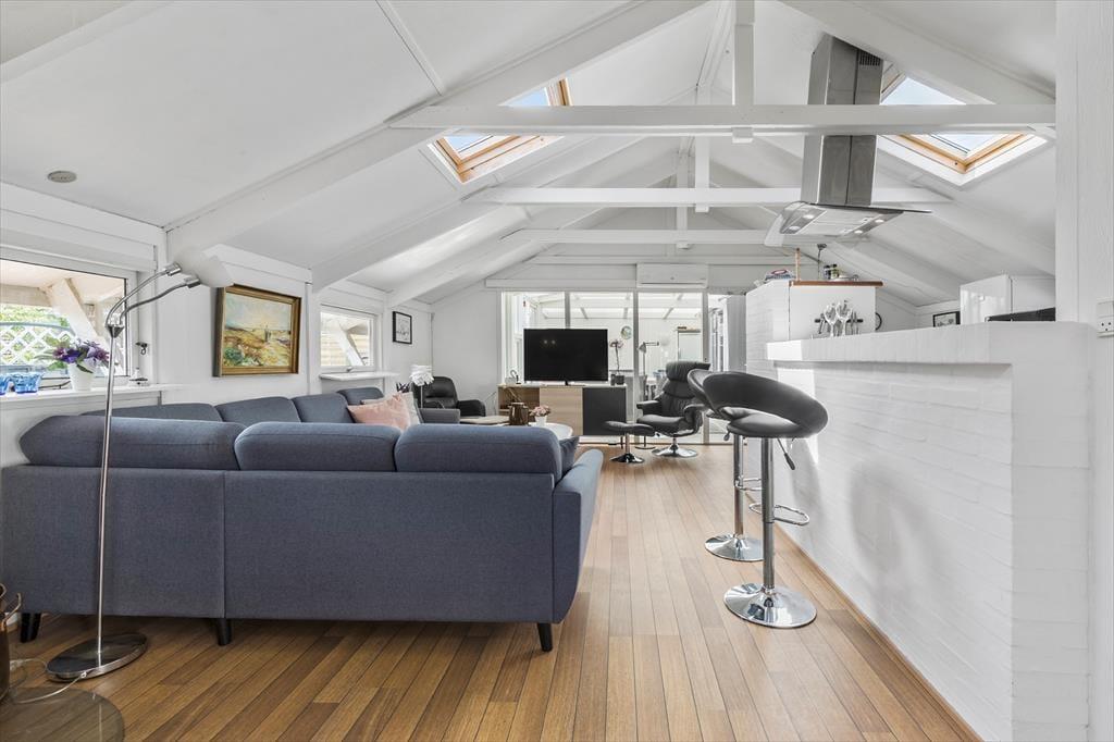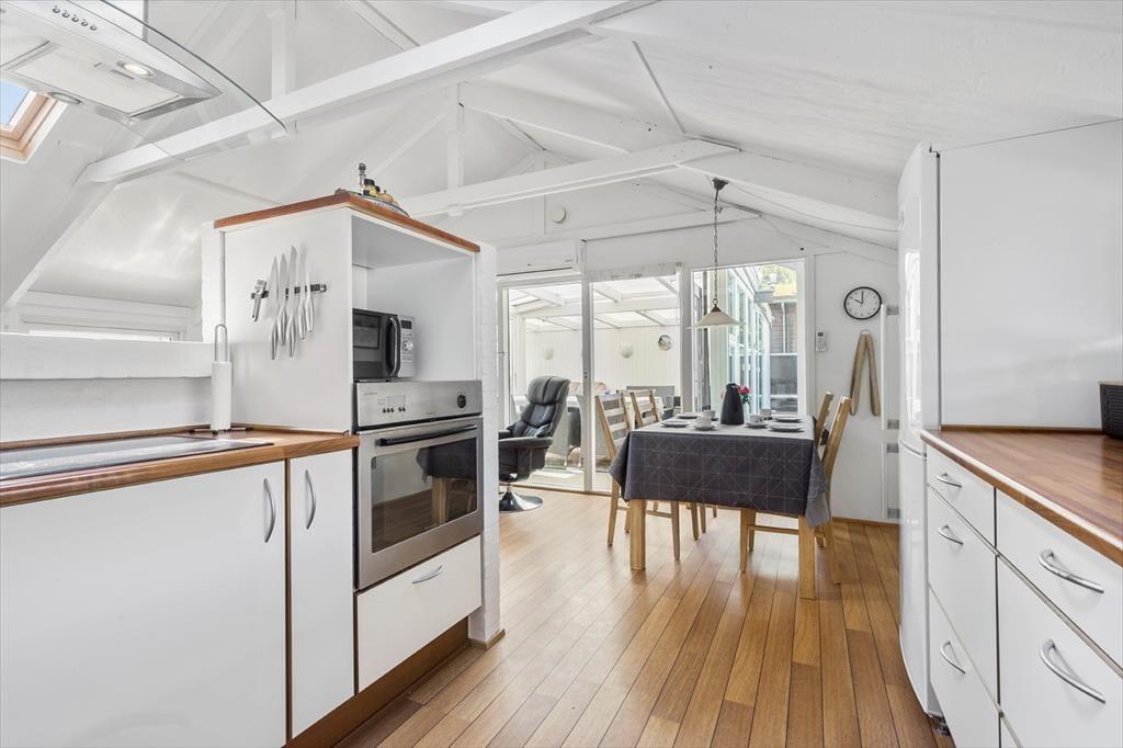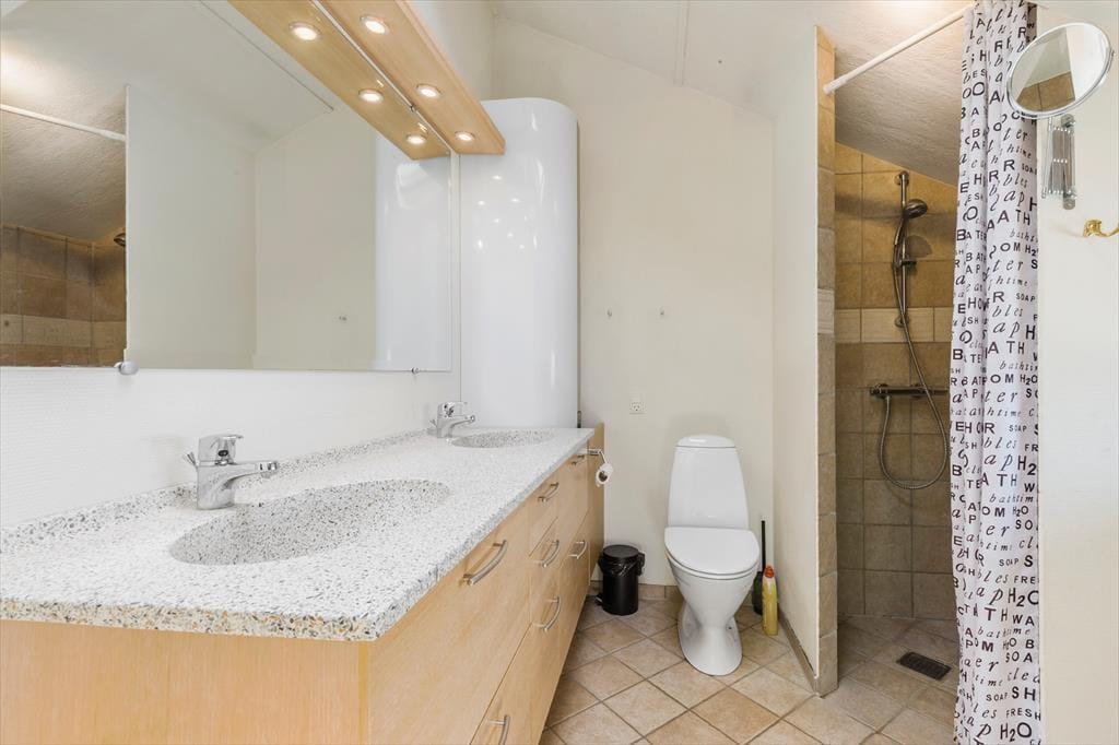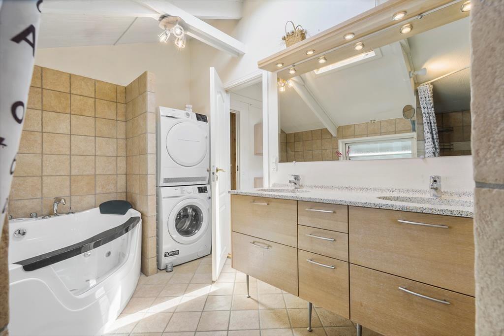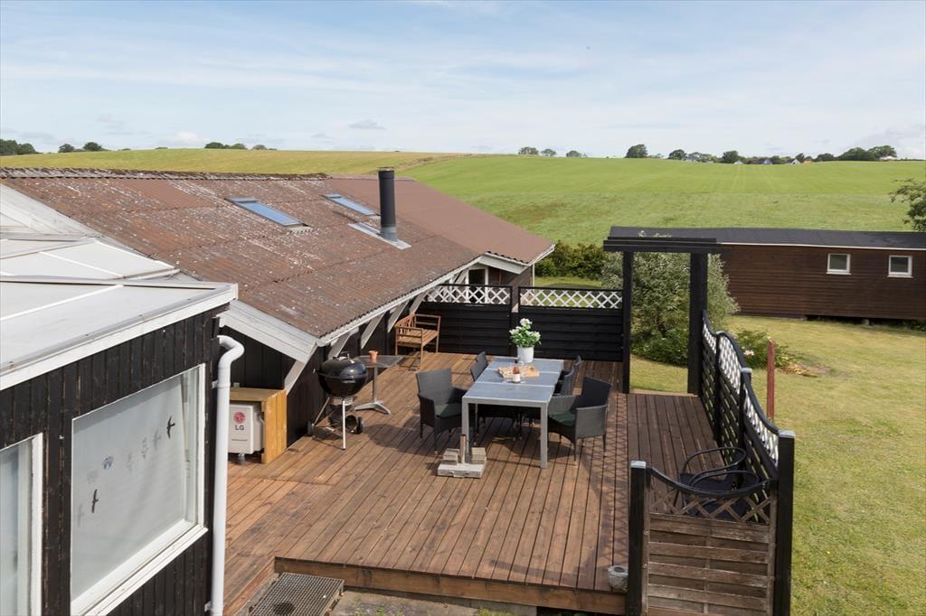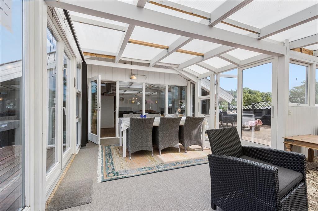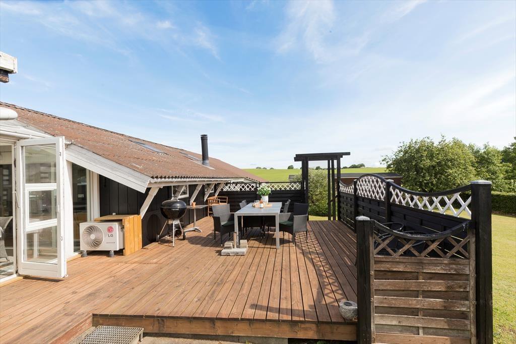 Udenfor finder du en skøn, solrig terrasse med havemøbler og grill – perfekt til lange måltider i det fri og afslapning i solen. Grunden indbyder til både leg, boldspil og stille stunder, og fra huset har du nem adgang til stranden, som ligger i gåafstand. Hvad enten du er til morgenbadning eller aftenture langs vandet, er du tæt på det hele.