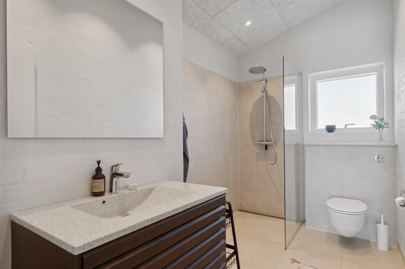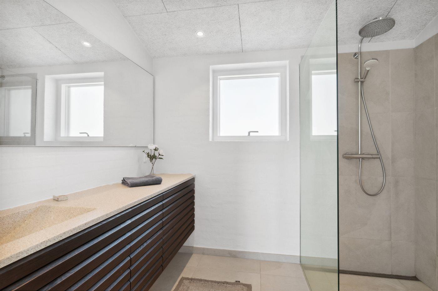 Der er 2 badeværelser med bruseniche og 2 toiletter, heraf 1 gæstetoilet. Der er gulvvarme på 1 badeværelse. Der er gulvvarme på gæstetoilettet.