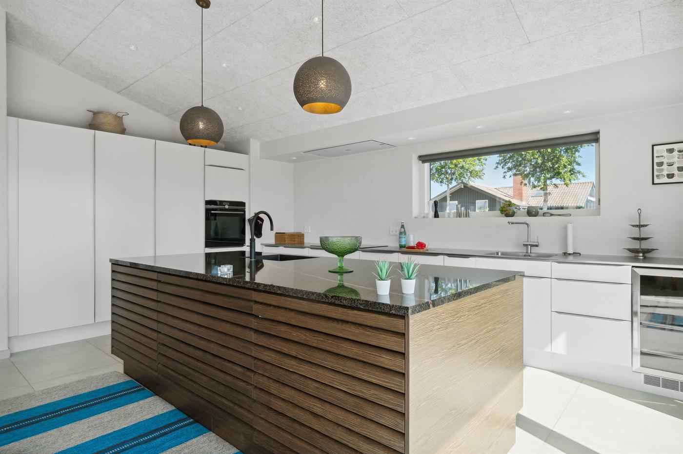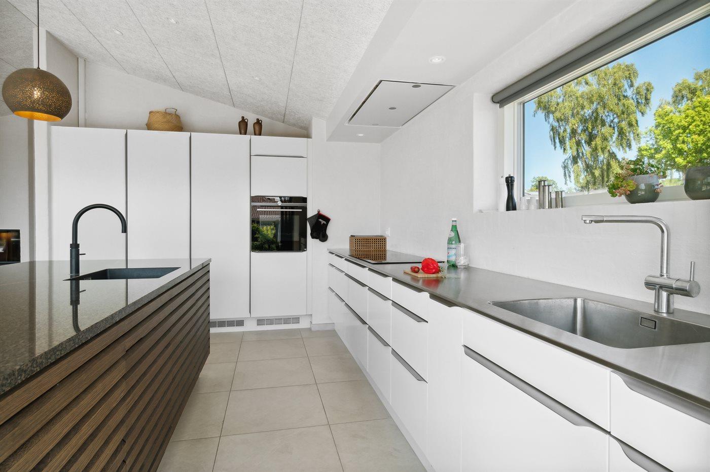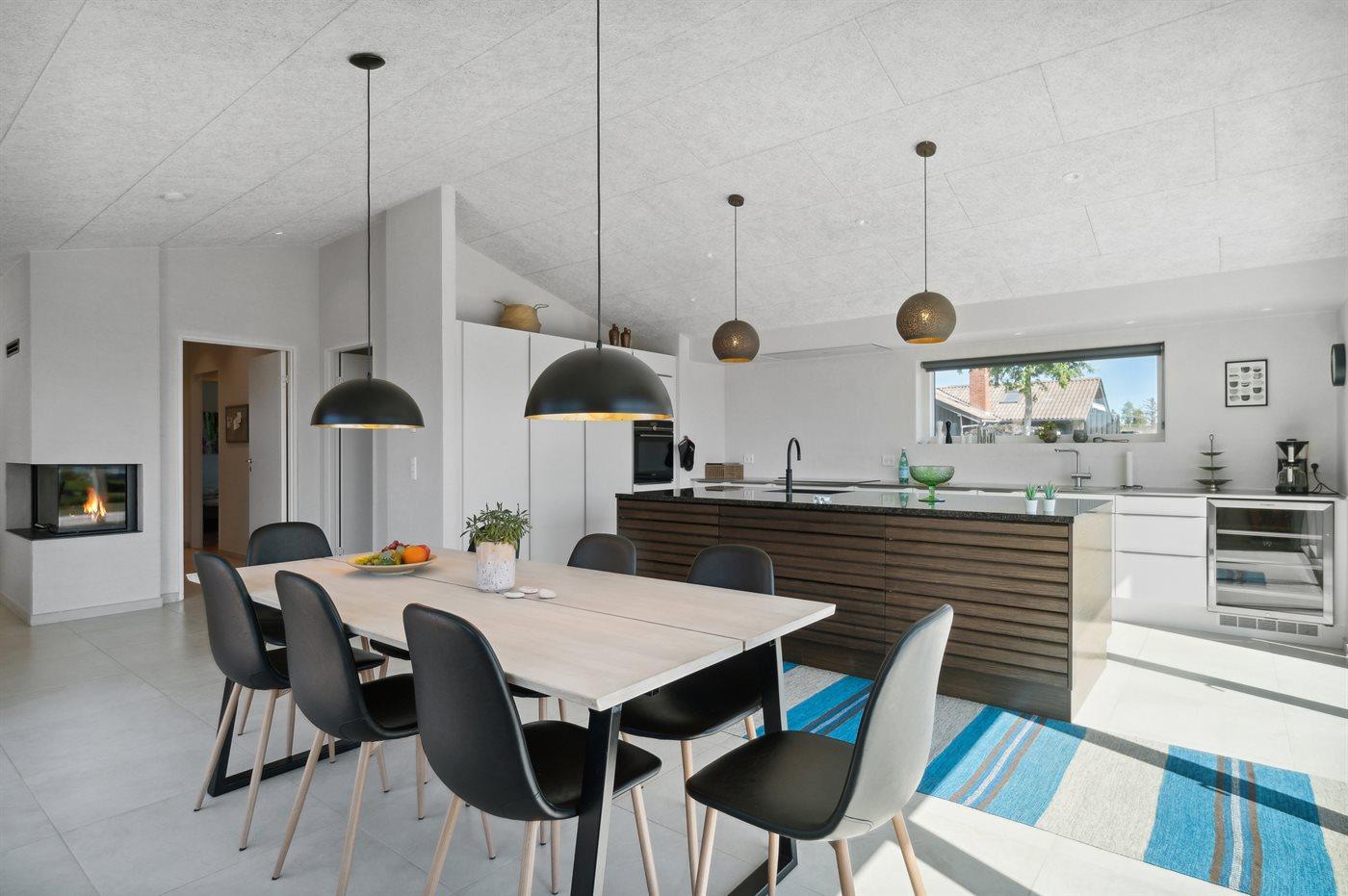 Køkkenet er udstyret med 1 køleskab. Der er 4 induktionskogeplader, varmluftovn samt opvaskemaskine.