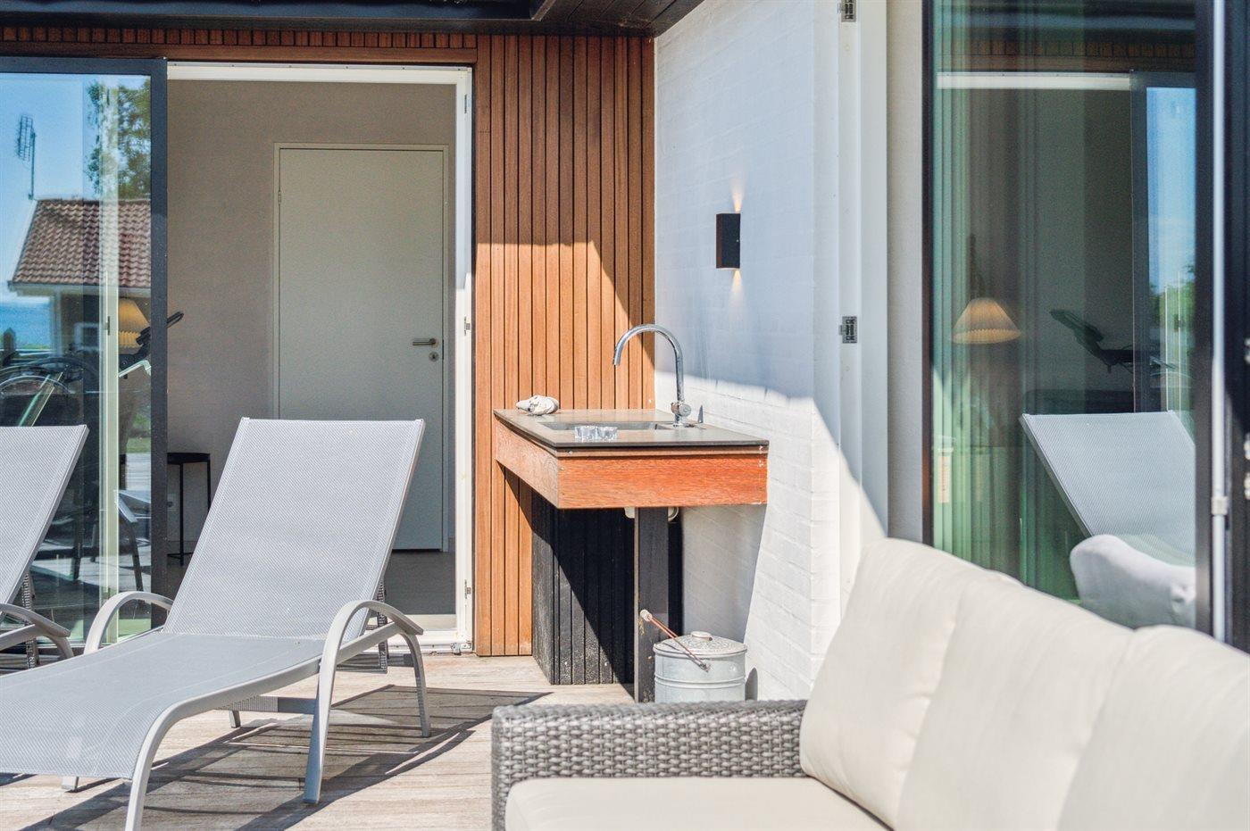 Sommeren kan virkelig nydes på den rummelige terrasse, hvor du kan solbade, grille og nyde udendørs måltider med den vidunderlige udsigt som kulisse. For ultimativ afslapning findes der et nedsænket spabad, hvor du kan lade bekymringerne forsvinde og nyde boblernes luksus. Du kan også forkæle dig selv i den udendørs sauna, hvor du kan slappe af og samtidig nyde den betagende udsigt over vandet.