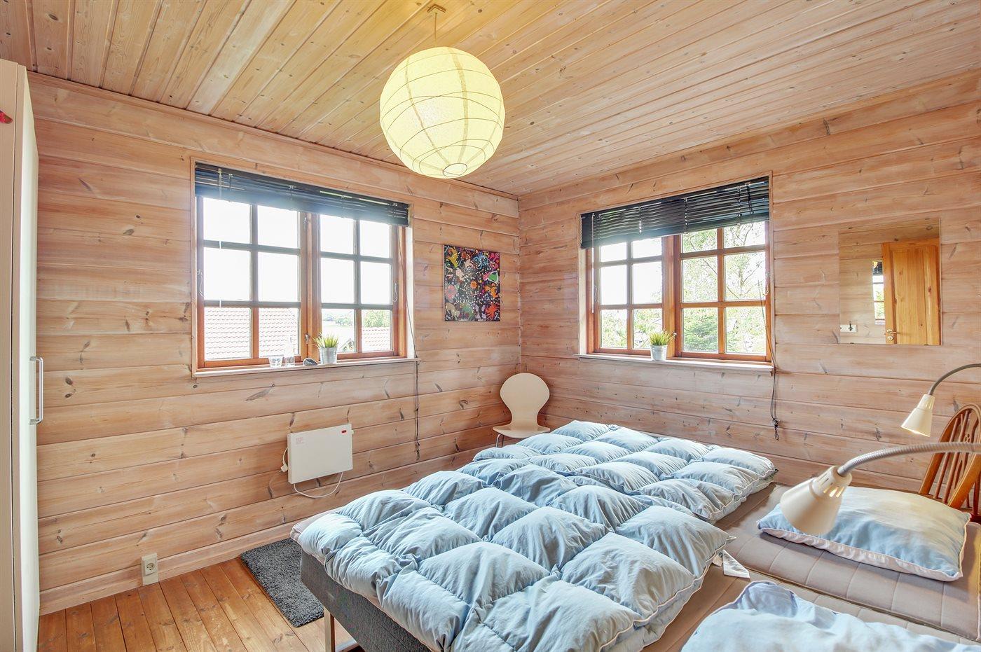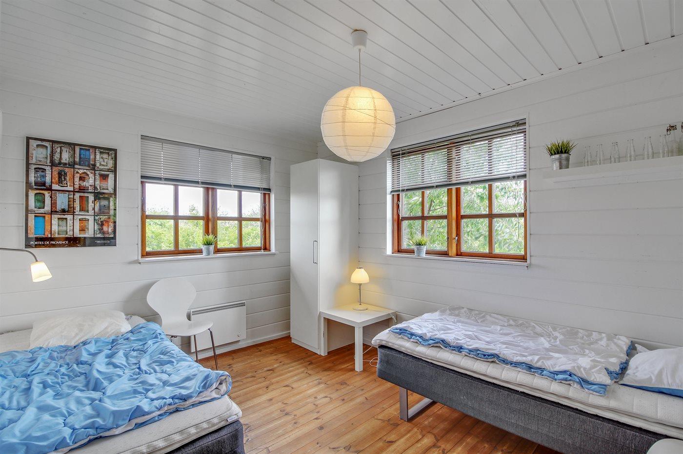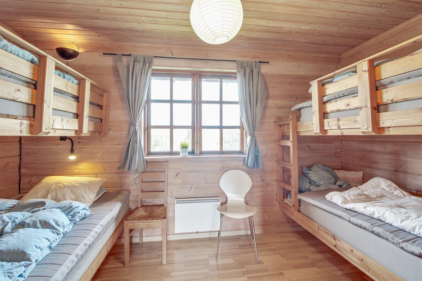 Der er i alt 4 soveværelser. Sovepladserne fordeler sig på: 4 sovepladser i dobbeltsenge. 2 sovepladser i enkeltsenge. 4 sovepladser i køjesenge. Derudover er der 1 stk. barneseng.