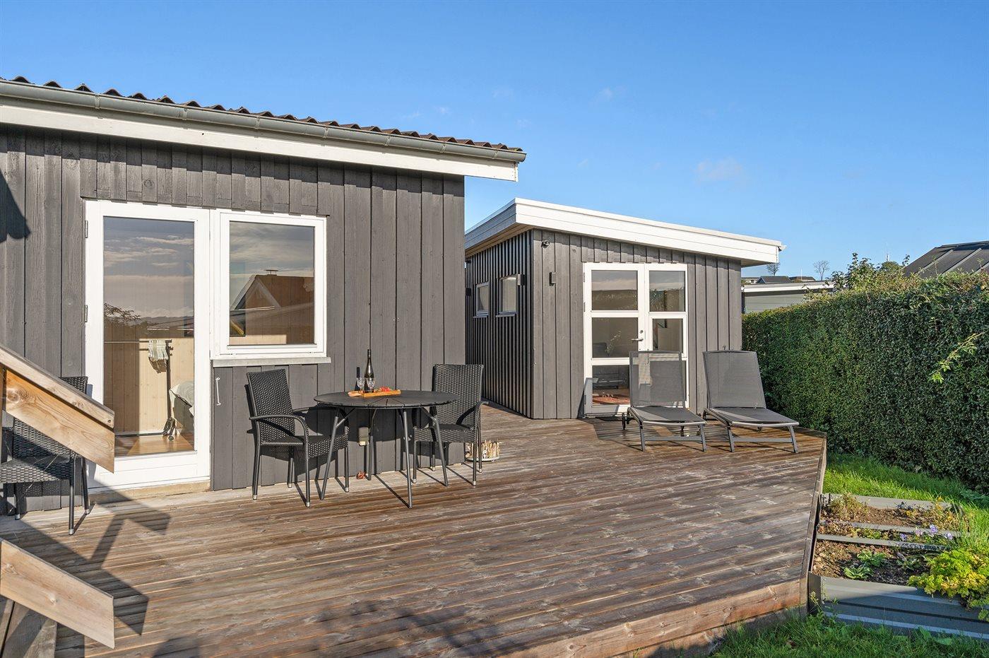 Fantastisk sommerhus kun 50 m fra stranden med havudsigt og stor terrasse ved Følle Strand.