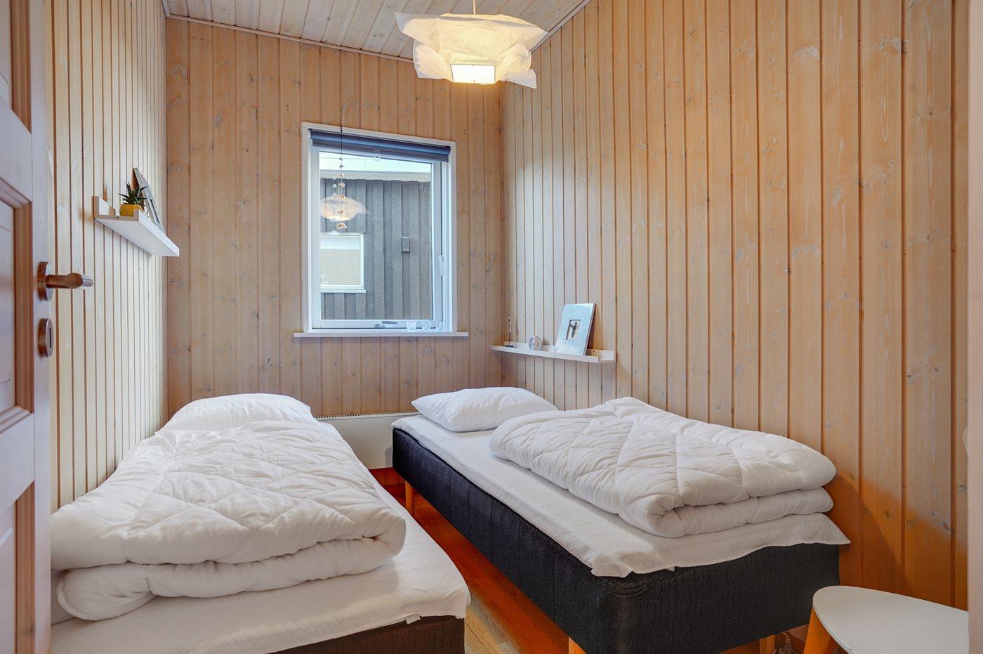 Der er i alt 3 soveværelser. Sovepladserne fordeler sig på: 2 sovepladser i dobbeltseng. 2 sovepladser i enkeltsenge. 1 soveplads i sovesofa (enkelt). 1 af disse sovepladser befinder sig i et anneks.