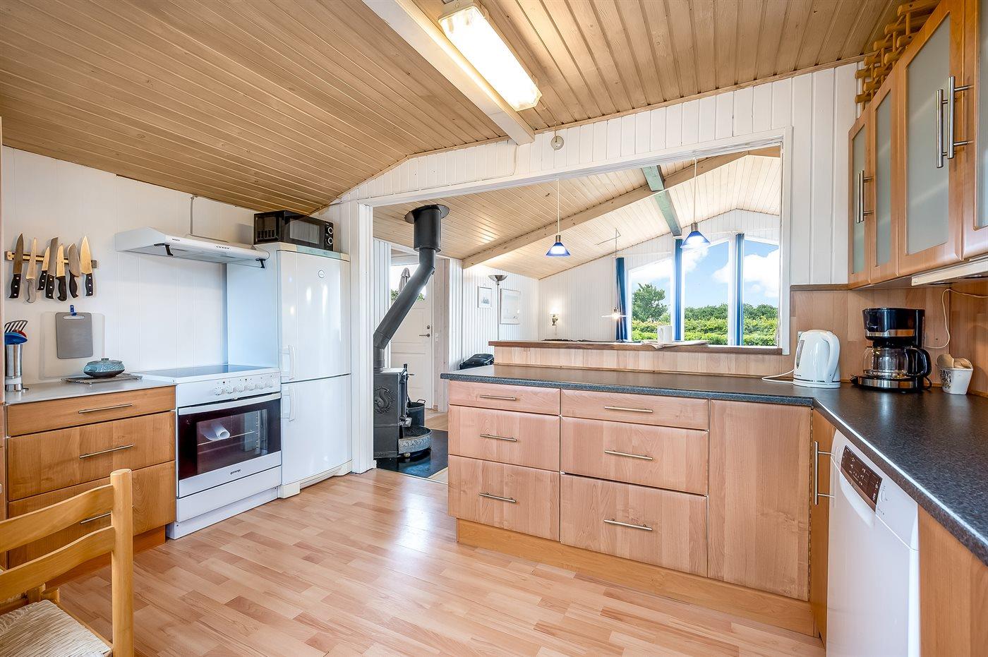 Køkkenet er udstyret med 1 køleskab. Der er 4 keramiske kogeplader, varmluftovn, mikrobølgeovn samt opvaskemaskine.