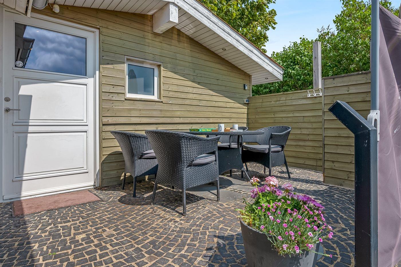 Ferieboligen er beliggende på en 400 m² stor naturgrund. Der er 50 m til havet. Nærmeste forretning er beliggende i en afstand af 2000 m. Til ferieboligen hører åbent terrasseareal. Desuden er der overdækket terrasse. Parkering ved ferieboligen.