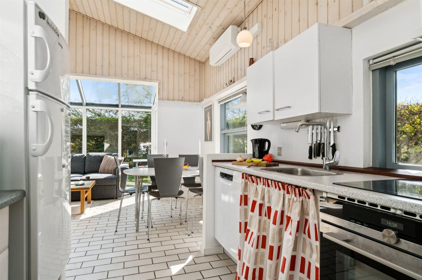 Køkkenet er udstyret med 1 køleskab. Der er 4 induktionskogeplader, varmluftovn, mikrobølgeovn samt opvaskemaskine.