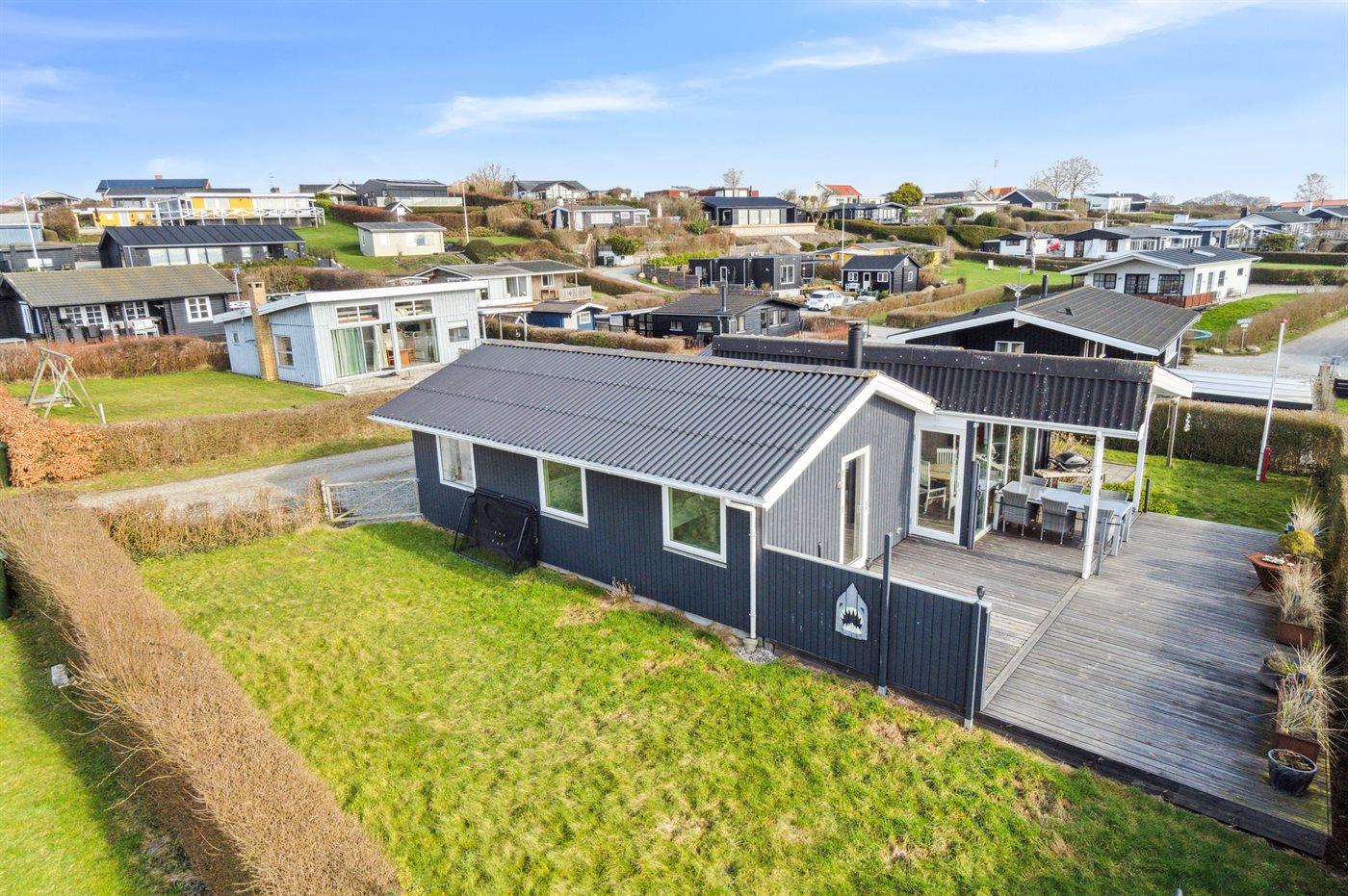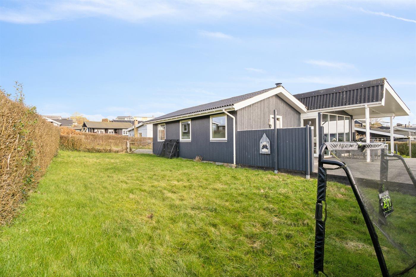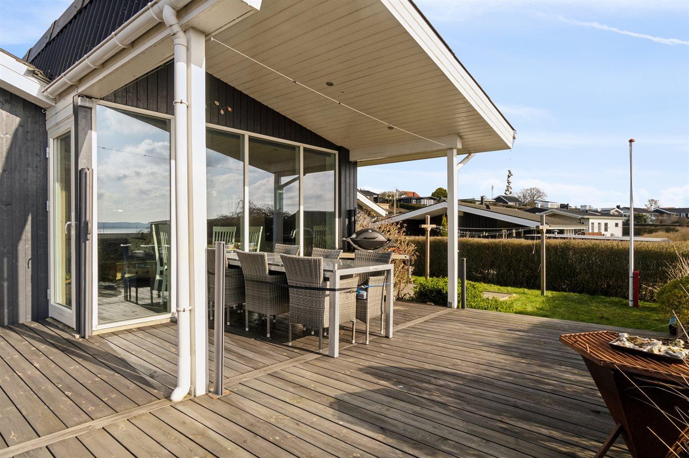 Husets have er indhegnet og terrassen, som er delvist overdækket, er et skønt udgangspunkt for lange aftener i den danske sommer.