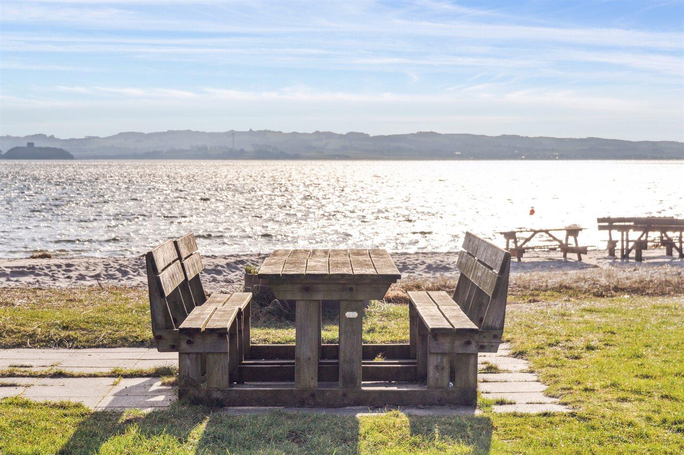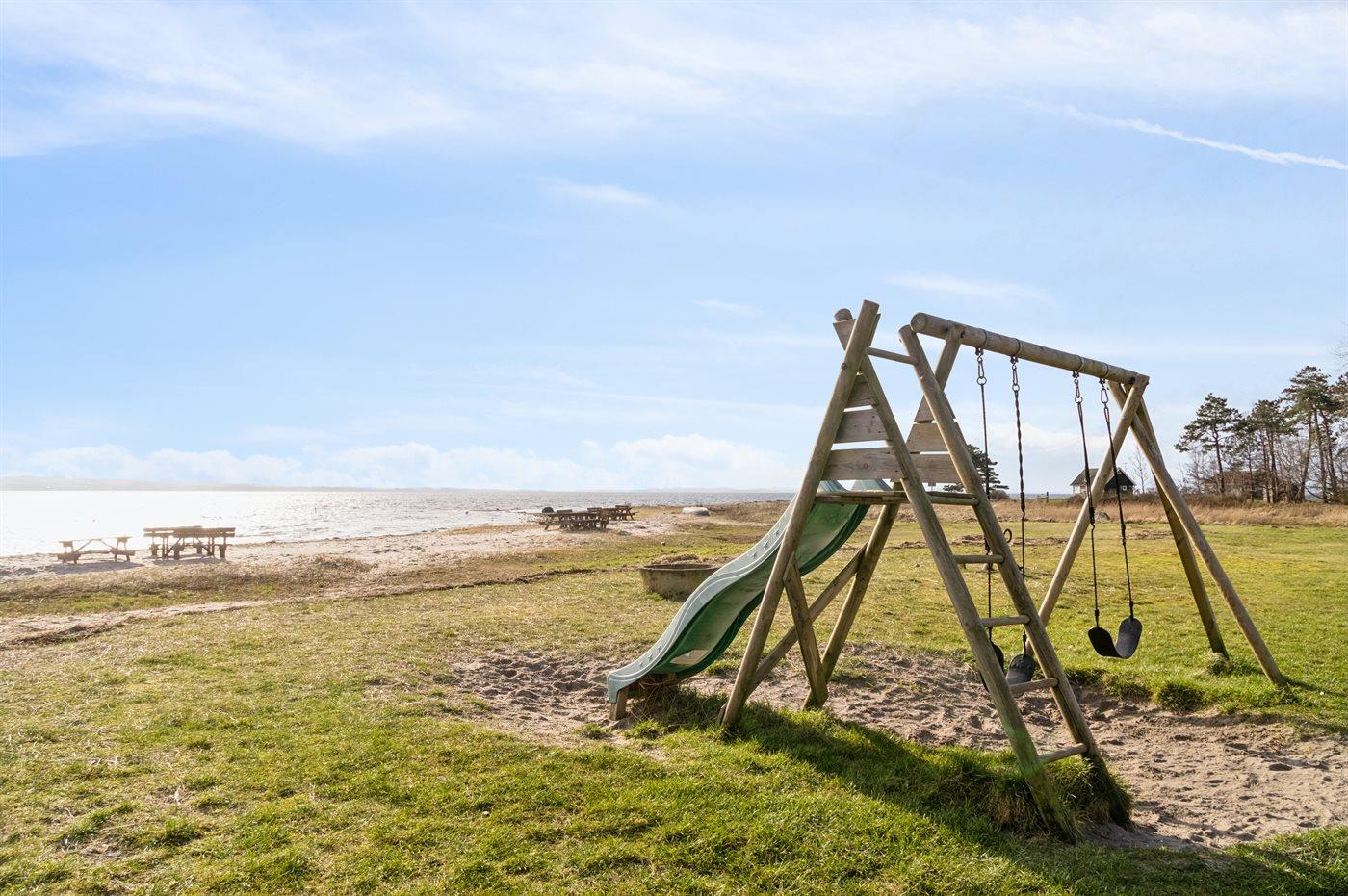 Ferieboligen er beliggende på en 432 m² stor naturgrund. Grunden er indhegnet. Der er 150 m til havet. Nærmeste forretning er beliggende i en afstand af 2000 m. Til ferieboligen hører åbent terrasseareal. Desuden er der overdækket terrasse. Rutchebane. Fodboldmål. Bålsted. Grill til rådighed. Parkering ved ferieboligen.