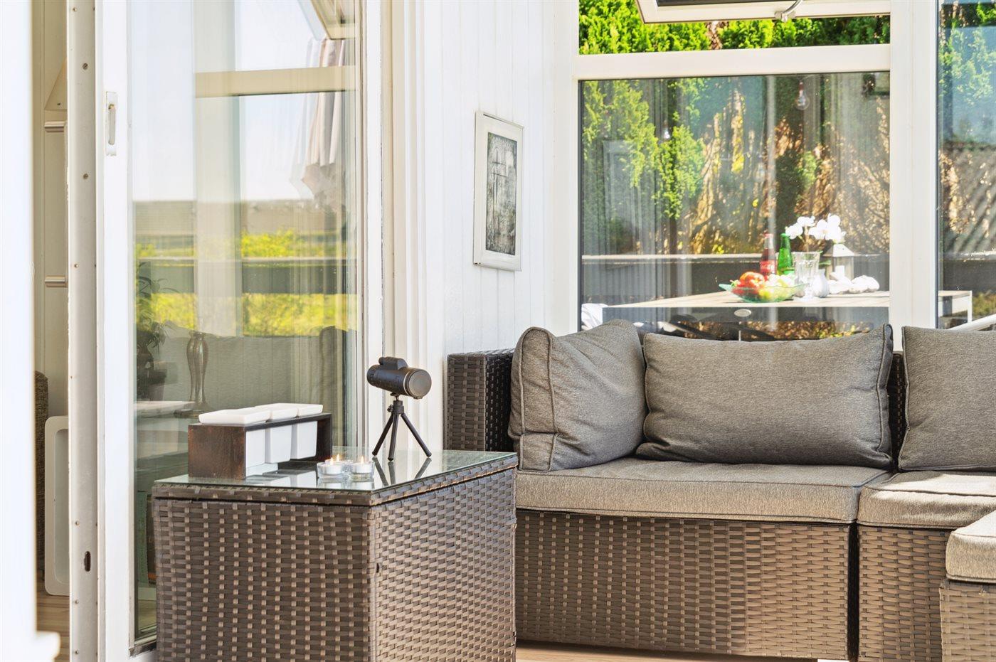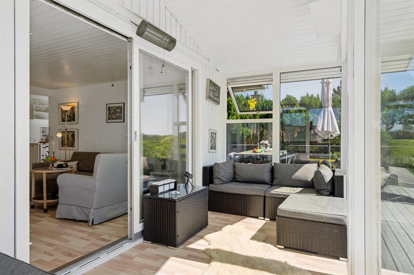 Særligt er husets udestue værd at fremhæve. Her sidder man varmt til langt ud på aftenen, mens man kan følge solnedgangen og lytte til bølgerne fra vandet. Det bliver ikke meget bedre.