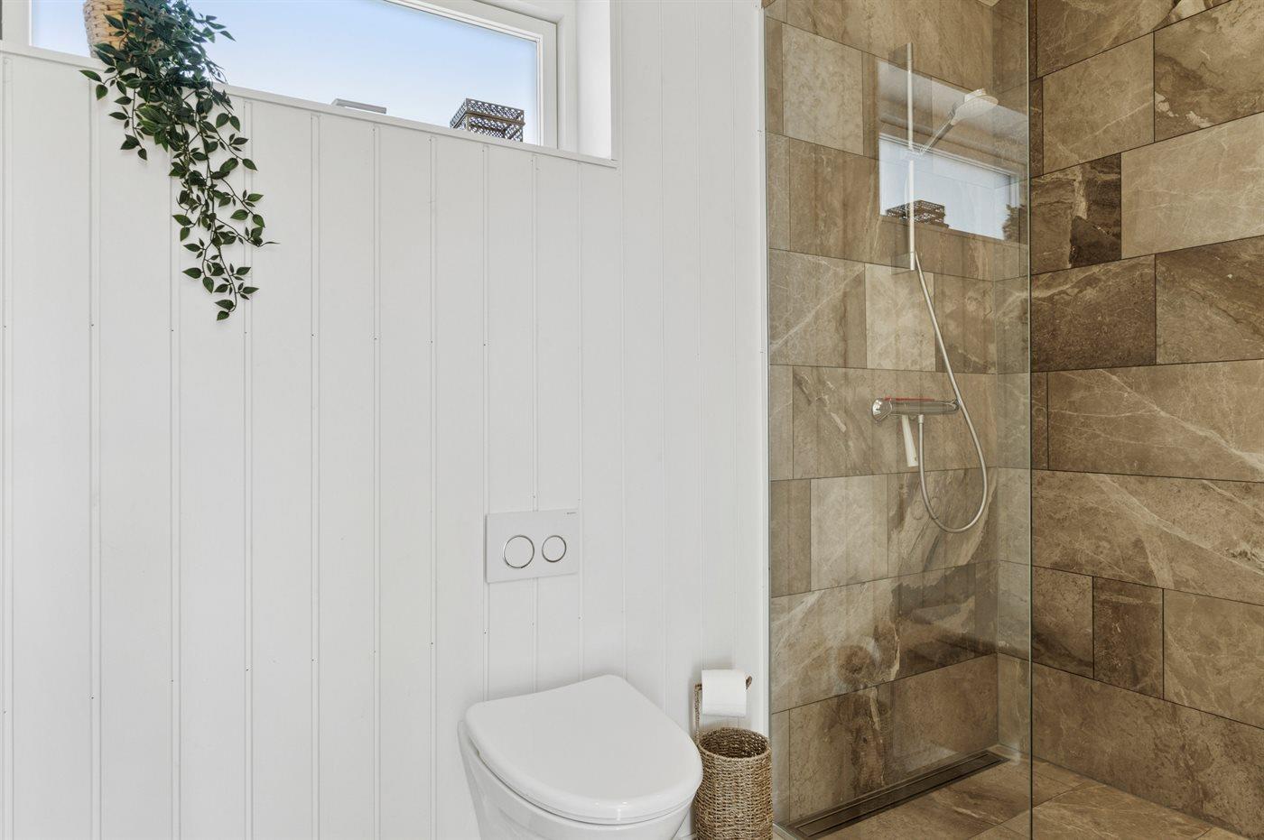 Der er 2 badeværelser med bruseniche og 2 toiletter. Der er gulvvarme på 2 badeværelser.