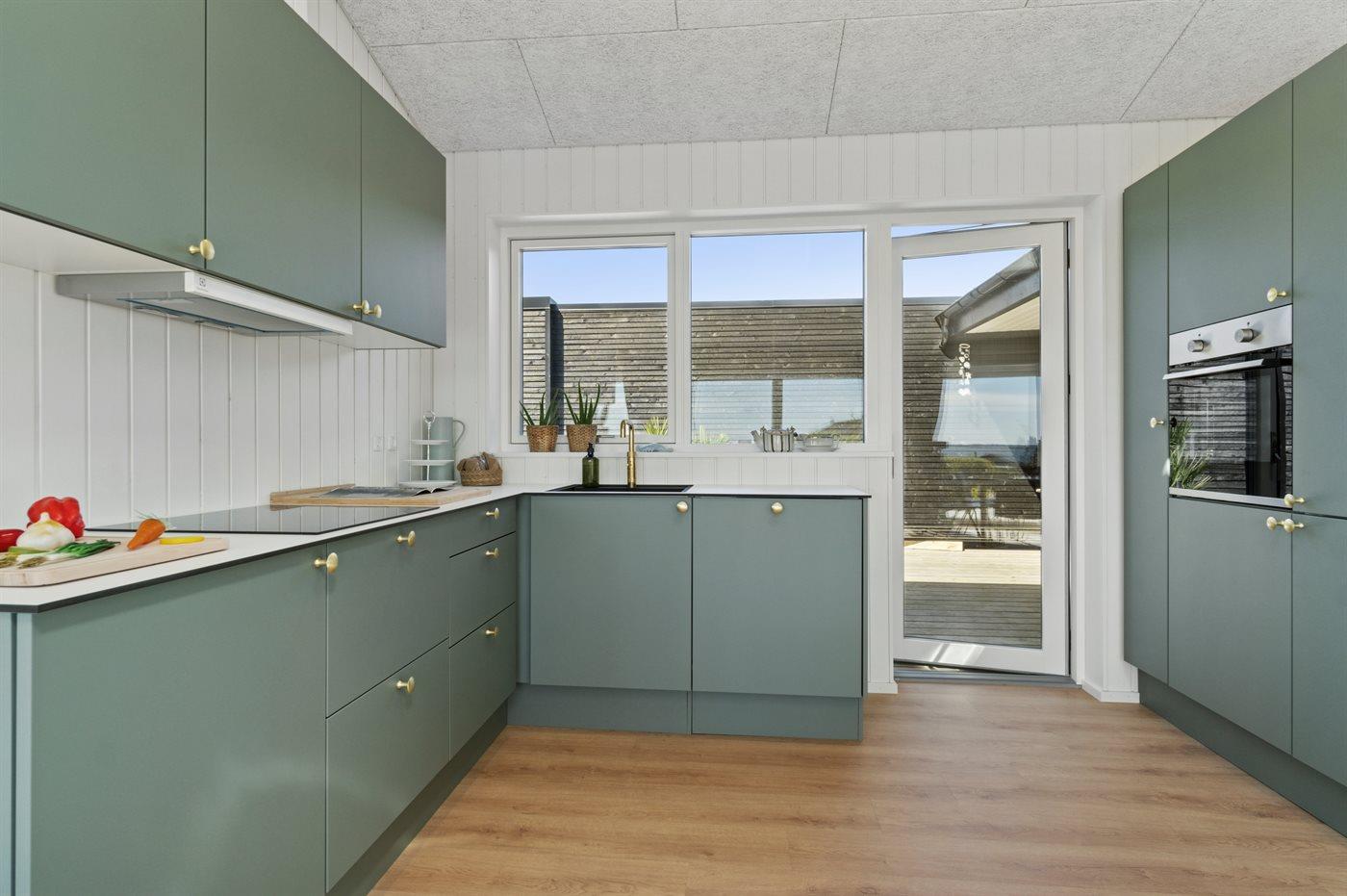 Køkkenet er udstyret med 1 køleskab. Der er 4 induktionskogeplader, varmluftovn samt opvaskemaskine.