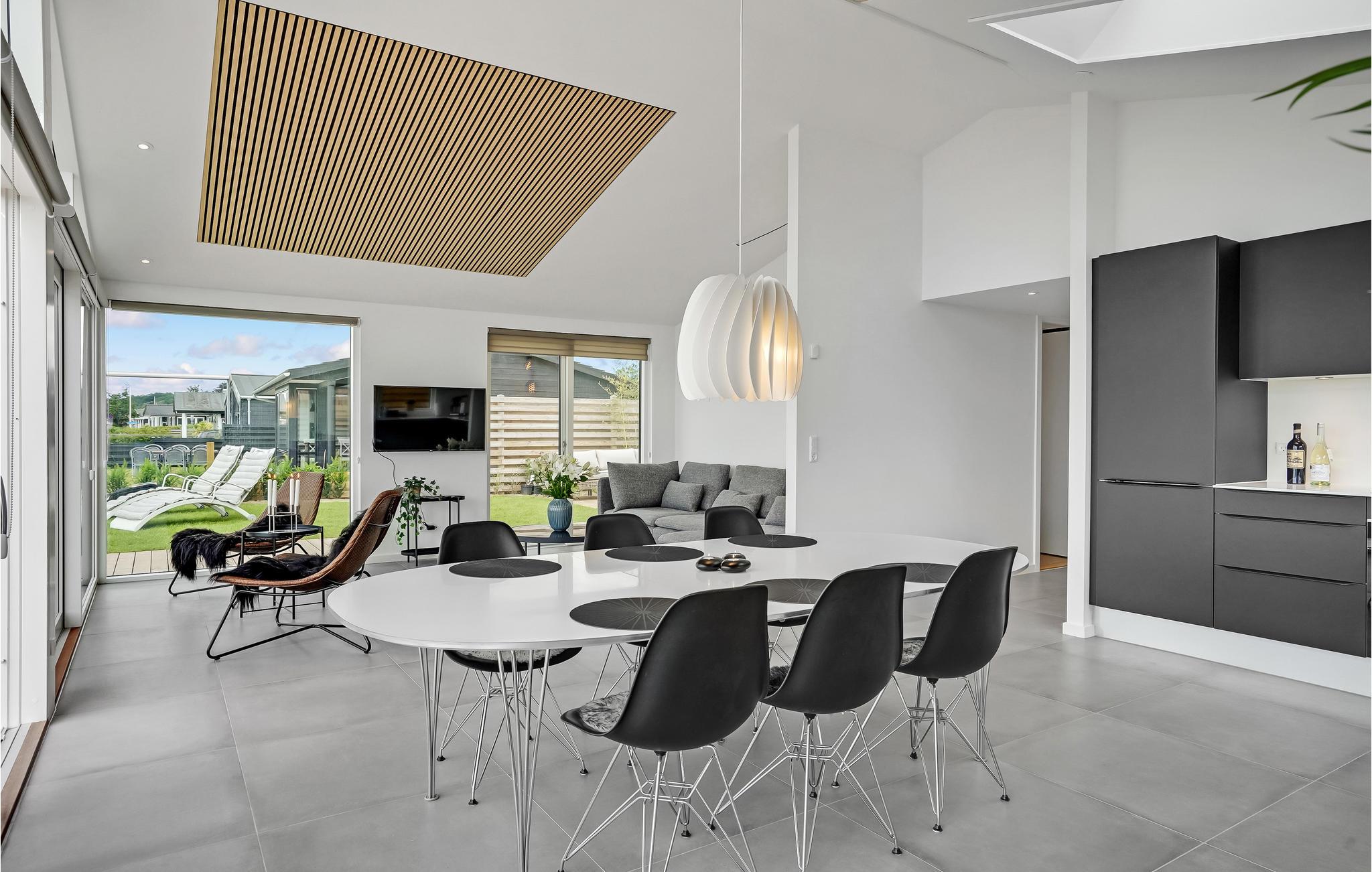 Med en underskøn beliggenhed lige ud til vandet finder I dette gennemført lækre sommerhus. Her er der kælet for detaljerne overalt, og det er en sand fornøjelse at bevæge sig rundt i husets formfuldendte arkitektur, behagelige miljøer og smarte faciliteter. I vil garanteret føle, at der bliver kræset om jer, fra det øjeblik hvor I træder ind. Vinduesfronterne sørger for, at I kan nyde havudsigten dagen lang, lige fra morgenkaffen til aftensmaden.