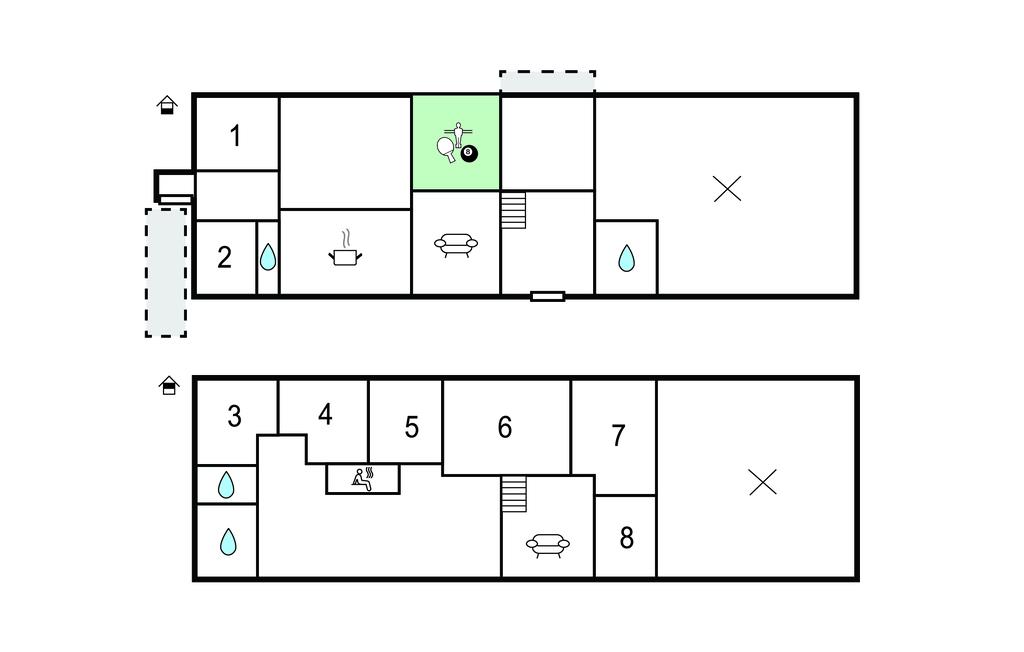 Hvis I er på udkig efter en bolig med plads til hele den udvidede familie eller flere vennefamilier, er I kommet til det helt rette sted. Denne tidligere gård byder nemlig på masser af plads, masser af sovemuligheder og virkelig gode faciliteter, der gør det nemt at fejre de store mærkedage med alle dem, I holder af. Der er masser af sjov for hele familien her. Der er spiseplads til alle, store sofaområder og et aktivitetsrum, hvor I kan udfordre hinanden til et slag billard. Her er også masser af godt legetøj til børnene, så ingen kommer til at kede sig. Efter en festlig dag er der mulighed for at hvile musklerne i spabadet eller svede helt igennem i saunaen.