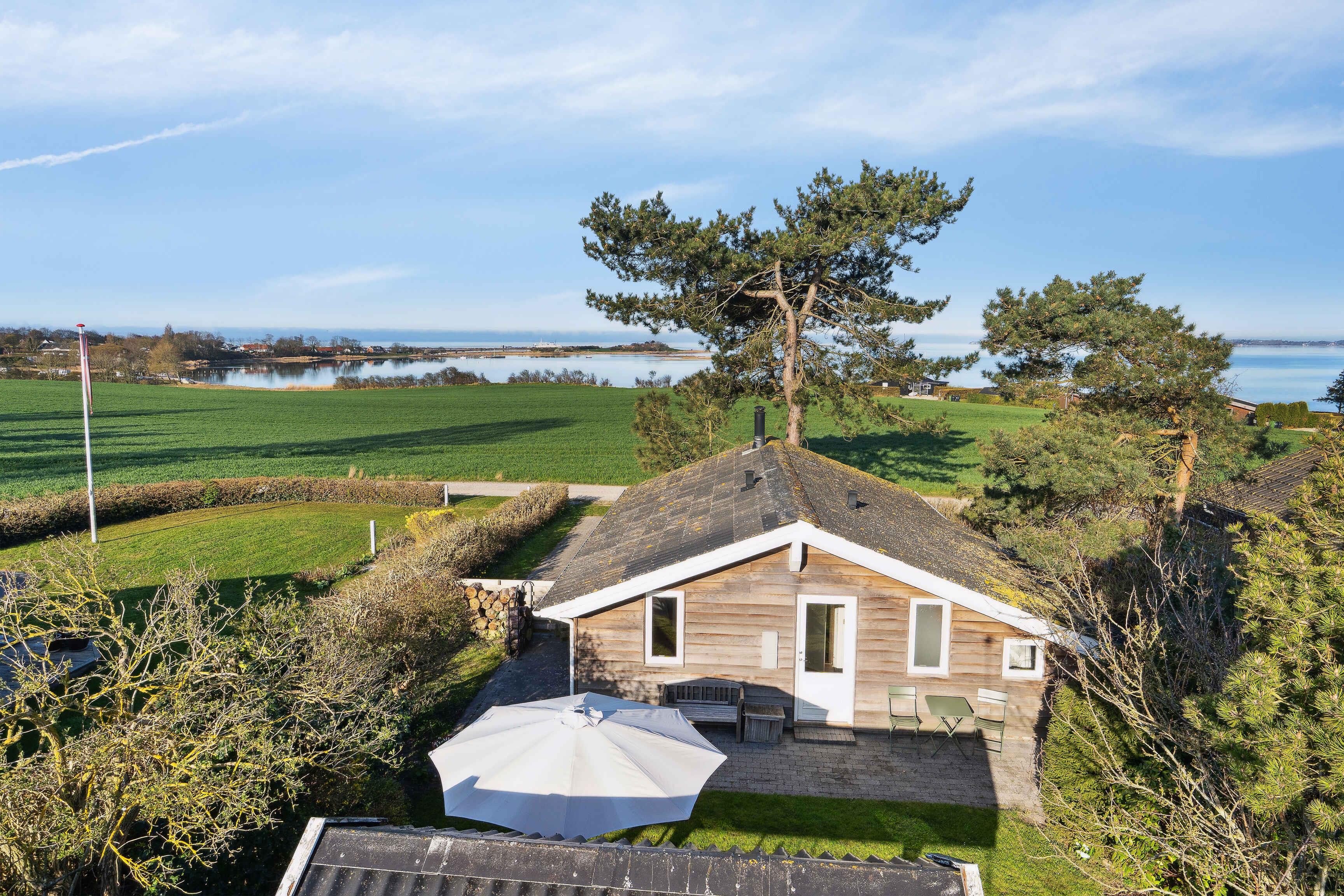 Hyggeligt sommerhus med 180 graders havudsigt kun 100 meter fra stranden, perfekt til afslapning i naturskønne omgivelser nær Faaborg.