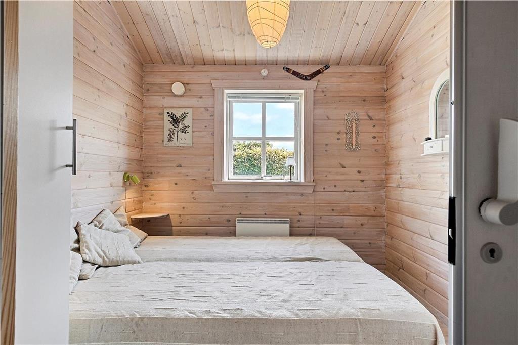 Pænt soveværelse med 1 dobbeltseng og fin skabsvæg.