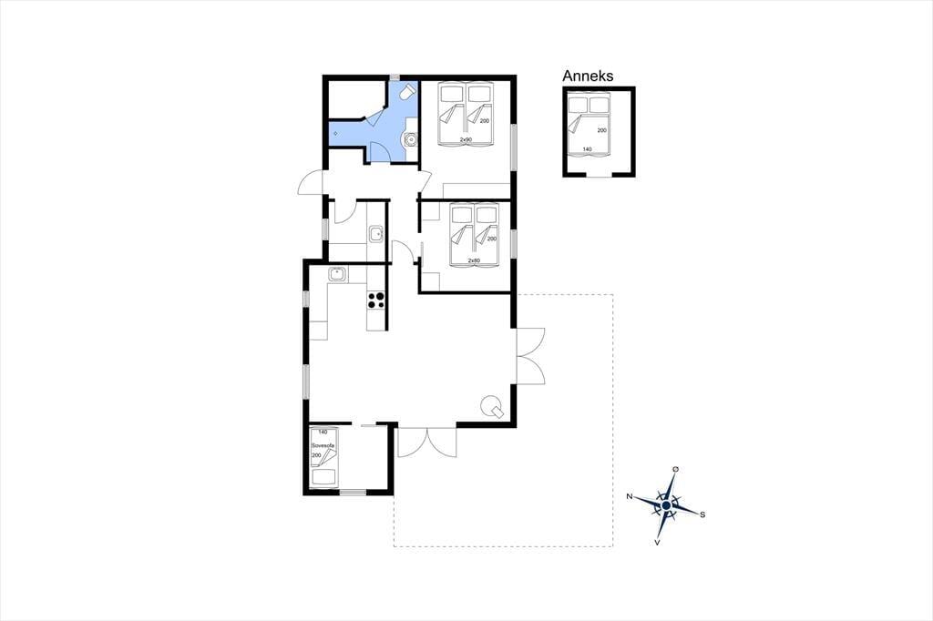 1 værelse med 1 dobbeltseng (bestående af 2 enkeltsenge, som kan flyttes fra hinanden) og skab.