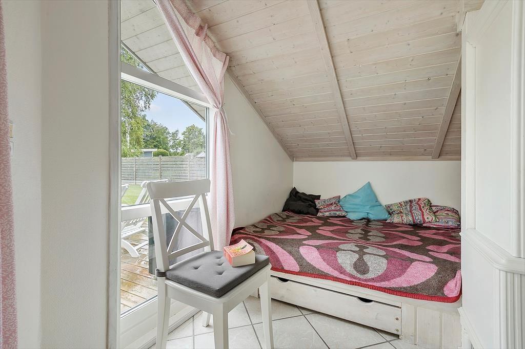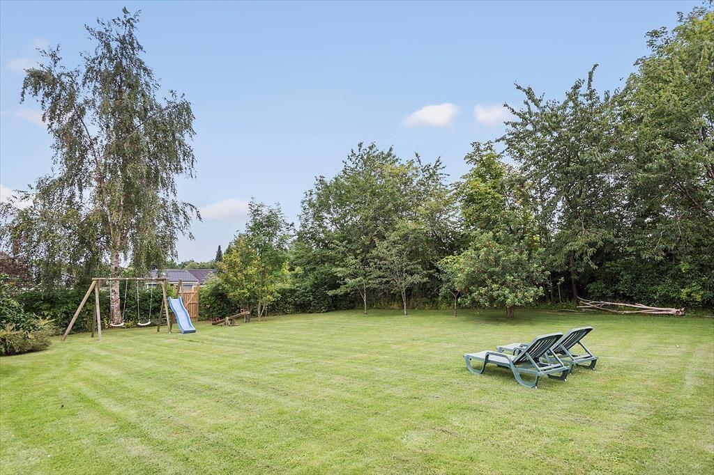 I den dejlige indhegnede lukkede have med gyngestativ og sandkasse, kan I nyde de lune dage. Hvis aftenerne bliver kølige, kan du og familien trække ind under den overdækkede del af terrassen og er der noget bedre end at sidde og nyde mørket og roen med et glas vin eller en god kop te eller kaffe? Her finder I både plads til hygge, afslapning og natureventyr. Fra huset har I kun 400 meter til kysten og det ligger nær skov og dejlig børnevenlig strand.