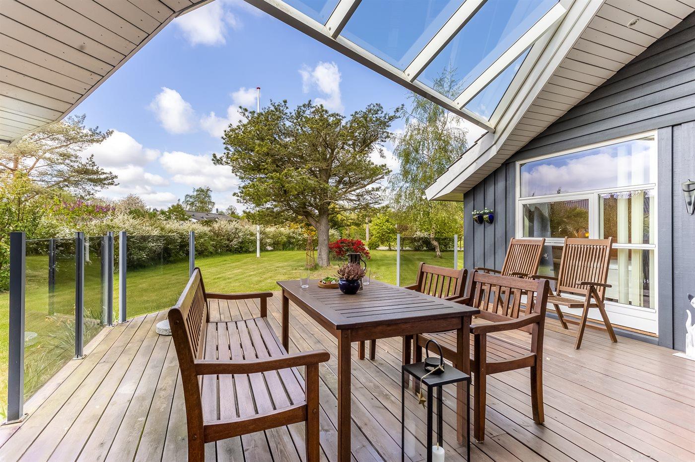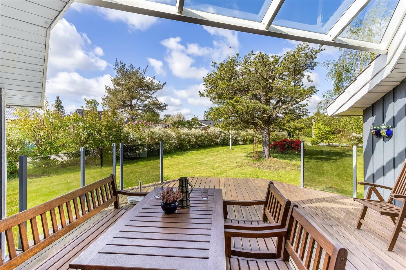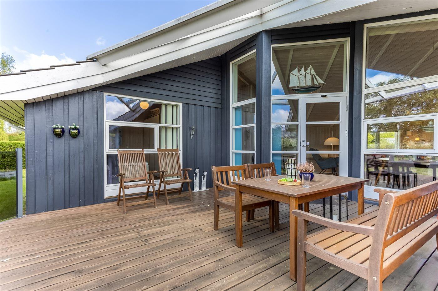 Huset omkranses af nogle gode terrasser, hvor solbadning og afslapning hører sig til. Desuden kan aftensmaden tilberedes på grillen. Den skønne grund inviterer til boldspil og gemmeleg.