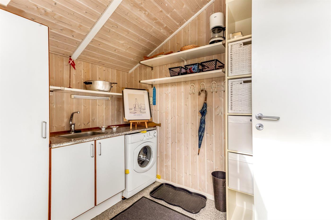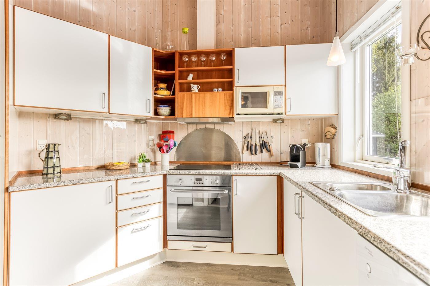 Køkkenet er udstyret med 1 køleskab. Der er 4 induktionskogeplader, varmluftovn, mikrobølgeovn samt opvaskemaskine.