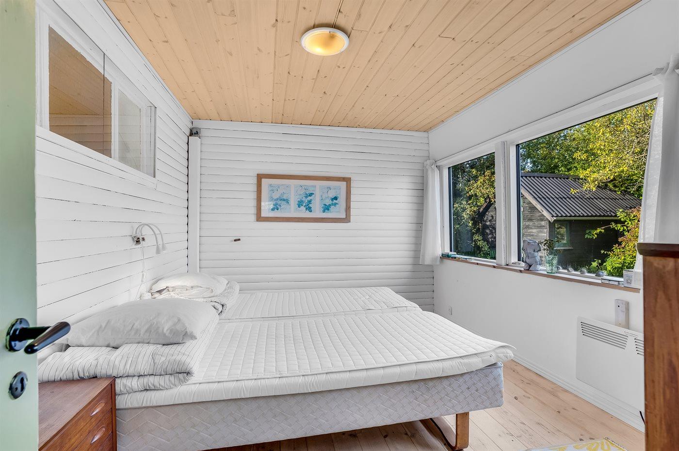 Der er i alt 3 soveværelser. Sovepladserne fordeler sig på: 4 sovepladser i dobbeltsenge. 2 sovepladser i enkeltsenge.