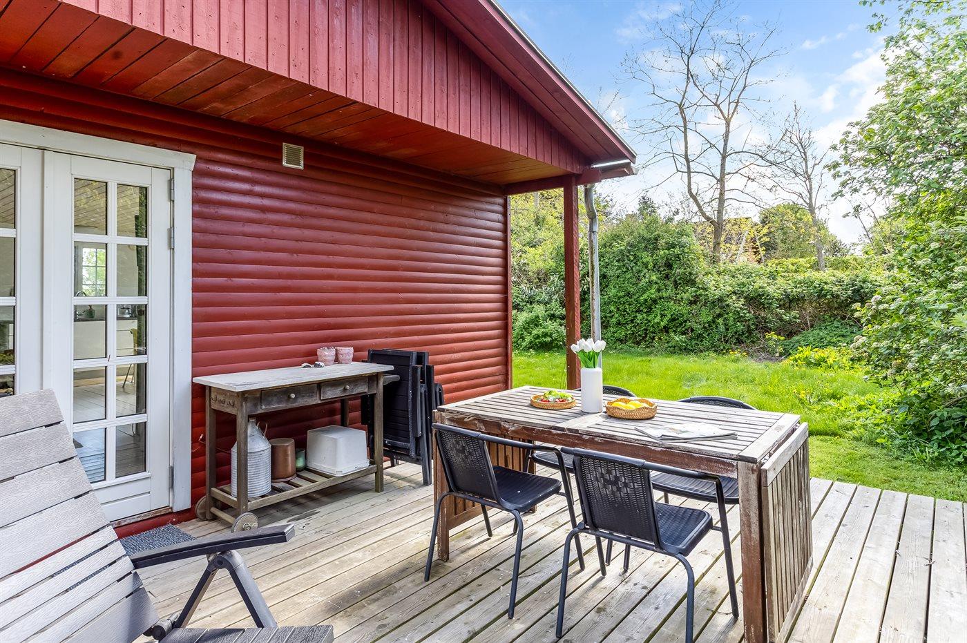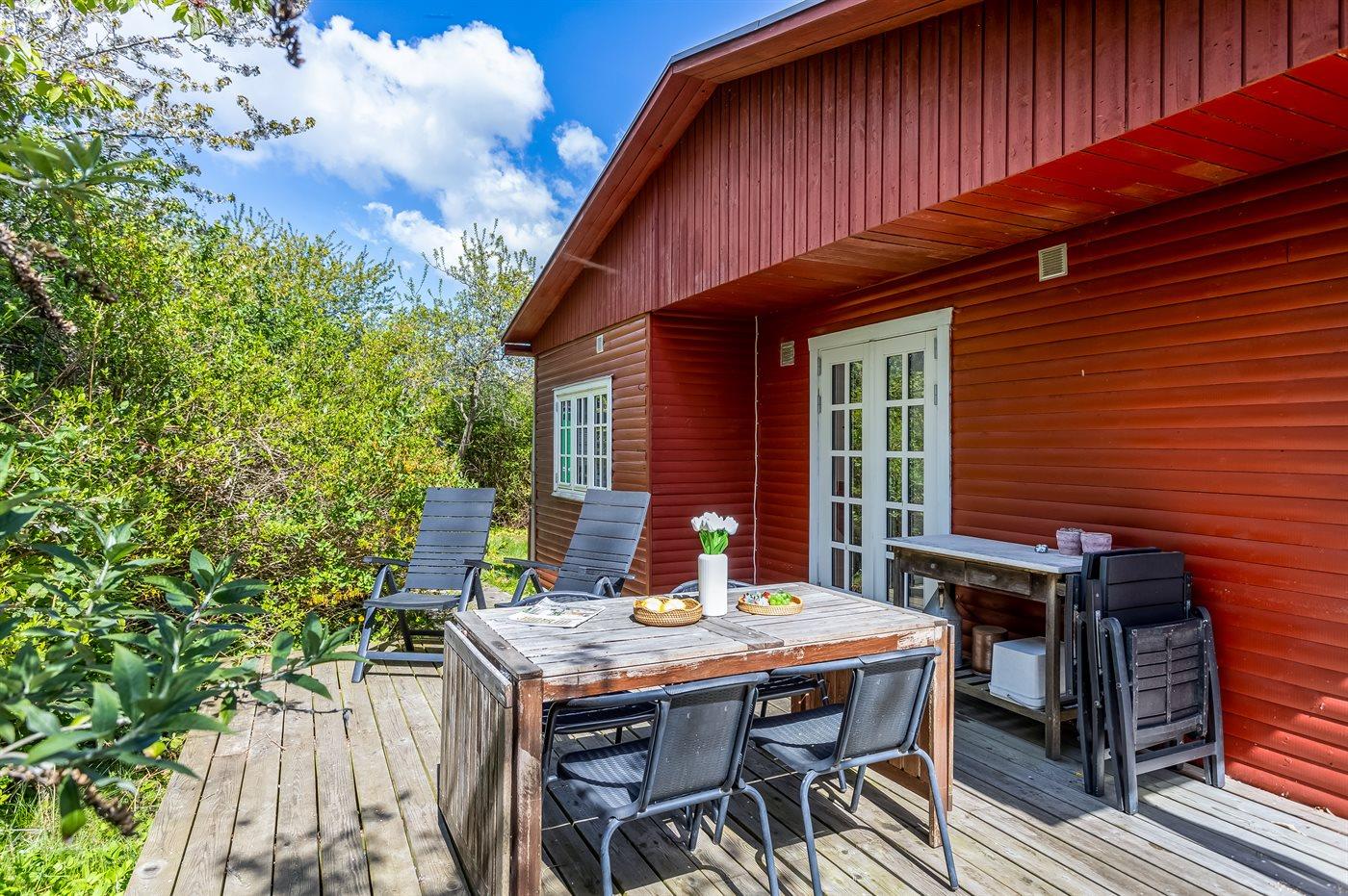 Ferieboligen er beliggende på en 790 m² stor naturgrund. Der er 300 m til havet. Nærmeste forretning er beliggende i en afstand af 1000 m. Til ferieboligen hører åbent terrasseareal. Der er redskabsrum. Bålsted. Udendørs sauna. Udendørs bruser med varmt og koldt vand. Grill til rådighed. Parkering ved ferieboligen.