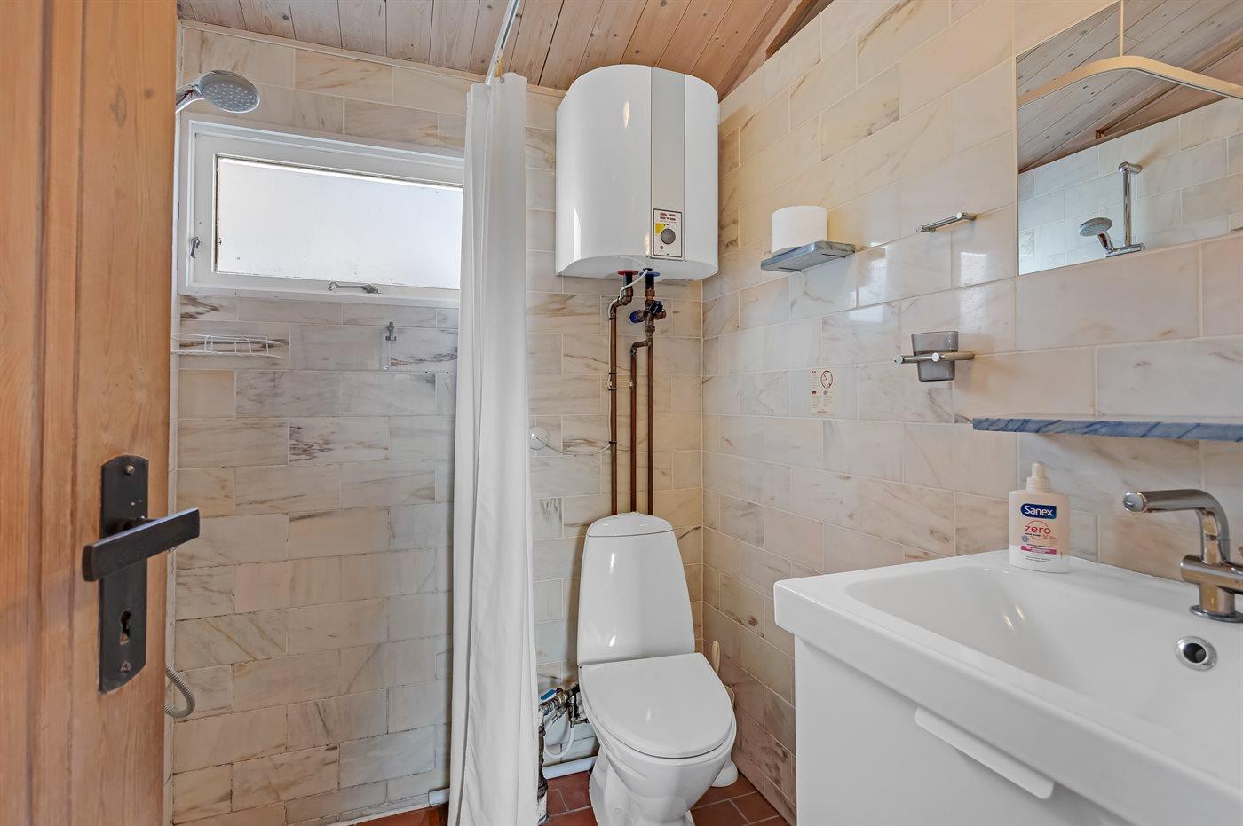 Der er 1 badeværelse med bruseniche og 1 toilet.