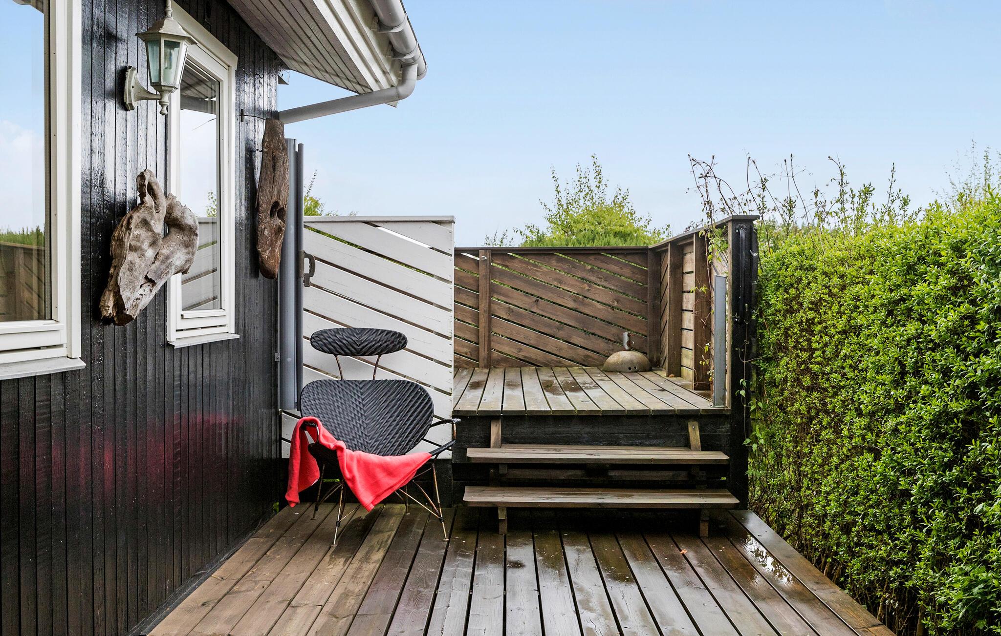 Når solen skinner, kan I nyde den lige fra morgenstunden på terrassen med en god kop kaffe. Dele af terrassen er overdækket, så I også kan finde skygge til at læse en god bog, mens børnene løber rundt og leger i haven. Holder vejret hele dagen, kan I lade en smuk aften gå på hæld med saftige bøffer fra grillen og et godt glas vin, mens I lægger planer for de kommende dage.
